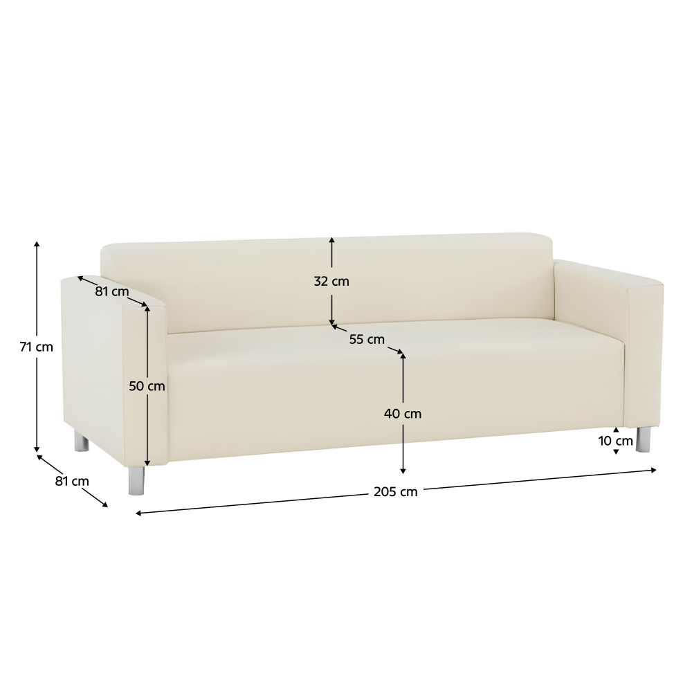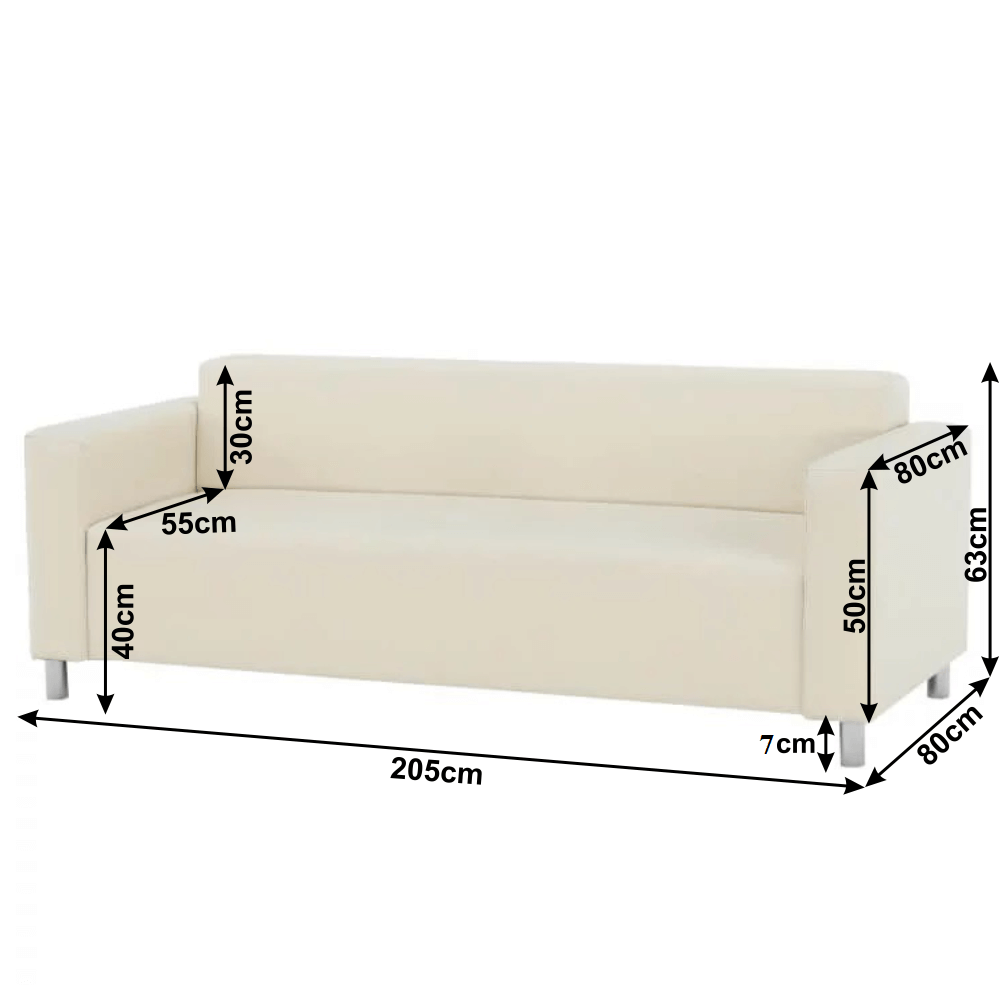Celočalúnený 3-sed HOMKER prevedenie: ekokoža béžová, Oderuodolnosť textílie podľa testu Martindale: 100 000 oderov rozmery: (ŠxHxV): 205x78x63 cm, Opierka na ruky (HxV): 80x50 cm Výška chrbtovej opierky: 30 cm výška x hĺbka sedenia: 40x55 cm.Výška spodného priestoru od podlahy: 7 cm Nosnosť na osobu: 90 kg Možnosť objednania v 6 vyobrazených farebných prevedeniach v cene 309 Eur. Pri individuálnej objednávke je potrebné zaplatiť 10% zálohu z danej sumy. Po uhradení zálohy bude Vaša požiadavka zadaná do výroby. Dodacia lehota 6-8 týždňov.