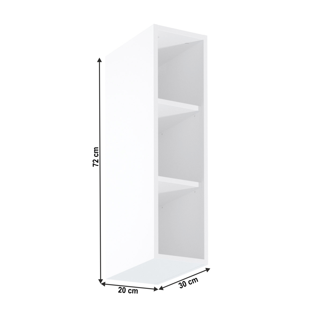 Horná otvorená skrinka W200 ku kuchyni SICILIAPrevedenie: DTD laminovanáFarba: bielaRozmery (ŠxHxV): 20x30x72 cmHrúbka materiálu: 15 mmSpodné skrinky ku kuchyni SICILIA sú dodávané bez pracovnej dosky. Môžete si objednať pracovnú dosku vo farebnom prevedení dub pieskovec v hrúbke 2,8 cm za 49 eur/bm a pracovnú dosku vo farebnom prevedení dub Lancelot v hrúbke 3,8 cm za 56 eur/bm.
