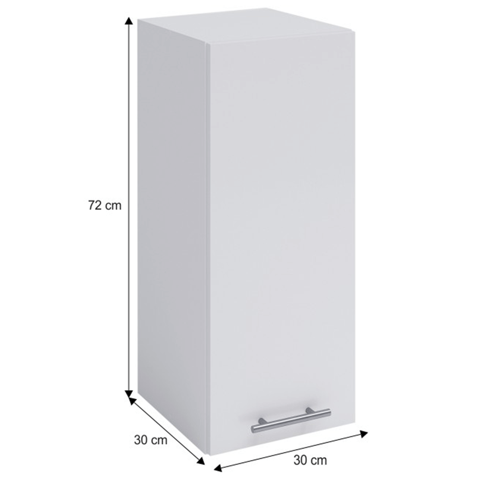 Horná skrinka W30,Materiál: DTD laminová,Farebné prevedenie: bielaRozmery ŠxVxH: 30x72x30 cm. Hrúbka materiálu: 16 mm Dodávané v demonte.Skrinky majú štandardtne predvŕtané pánty na pravej strane, montážny návod môže byť len ilustračný.Skrinky základnej zostavy sú dodávané vrátane pracovnej dosky, drezová skrinka je dodávaná bez pracovnej dosky. Sektorové skrinky sú dodávané bez pracovnej dosky.Možnosť zakúpenia pracovnej dosky Fabiana Metalic brown sivá s hrúbkou 2,8 cm,šírkou 60 cm a cenou za bm 49 Eur.Možnosť dokúpenia univerzálneho Ľ/P drezu v cene 74 eur