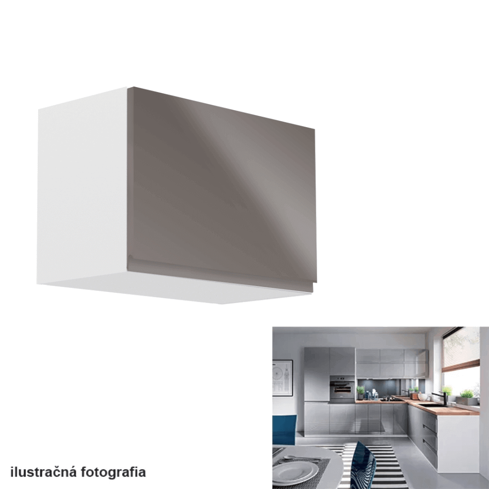 Horná skrinka, Aurora G60KPrevedenie: DTD laminovaná/MDFFarba: biela/sivá lakovaná extra vysoký lesk Rozmery (ŠxHxV): 60x32x40 cmHrúbka materiálu: 15 mmSystém tichého zatvárania dvierokPracovná doska nie je súčasťou skriniek. Je možné si doobjednať pracovnú dosku v prevedení dub artisan s hrúbkou 38 mm za 56 eur/bm. Možnosť dokúpiť drez LAY ON. Spodné skrinky sú dodávané vrátane dolnej lišty, avšak presný rozmer, ktorý potrebujete, je potrebné uviesť do poznámky v objednávke. Ak rozmer neuvediete, môže sa stať, že vám sokel nebude dodaný. Ku každej dolnej skrinke, okrem D25PZ, je potrebné doobjednať 2 ks úchytok na sokel - cena 1Eur/2ks.