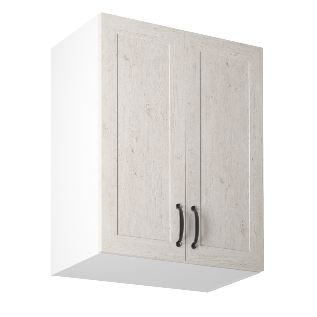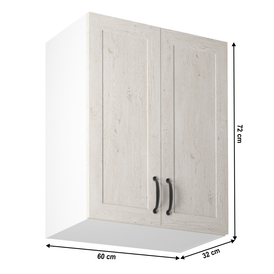Horná skrinka s dvierkami, ROYAL G60Materiál: korpus je vyrobený z kvalitnej laminovanej drevotriesky/kovová úchytkaFarba: biela/dvierka v prevedení sosna nordickáRozmery ŠxHxV: 60x32x72 cm Hrúbka materiálu: 15 mmDodávané v demonte. Spodné skrinky ku kuchyni ROYAL sú dodávané bez pracovnej dosky a bez sokla. Pracovnú dosku Dub Porterhouse tmavý možné doobjednať v hrúbke 3,8 cm v cene 59 Eur/1 bm. Ku každej dolnej skrinke, okrem rohových skriniek D25PZ, je potrebné doobjednať aj sokel v prevedení dub divoký v cene 10 ur/1 bm a 2 kusy úchytov na sokel v cene 1 Eur/2 ks. Objednávku vpíšte do poznámky v objednávkovom formulári.