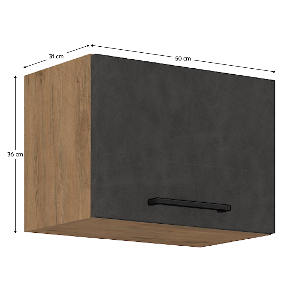 Horná skrinka Vega 50 GU-36 1FMateriál: DTD laminovanáFarba: dub lancelot/sivá matnáRozmery (ŠxHxV): 50x31x36 cmSystém tichého zatvárania dvierokDodávané v demonteSpodné skrinky sú dodávané vrátane dolnej lišty, bez pracovnej dosky.Možnosť dokúpenia pracovnej dosky dub lancelot v cene 55 Eur/bm. Možnosť dokúpiť univerzálny drez LAY ON.