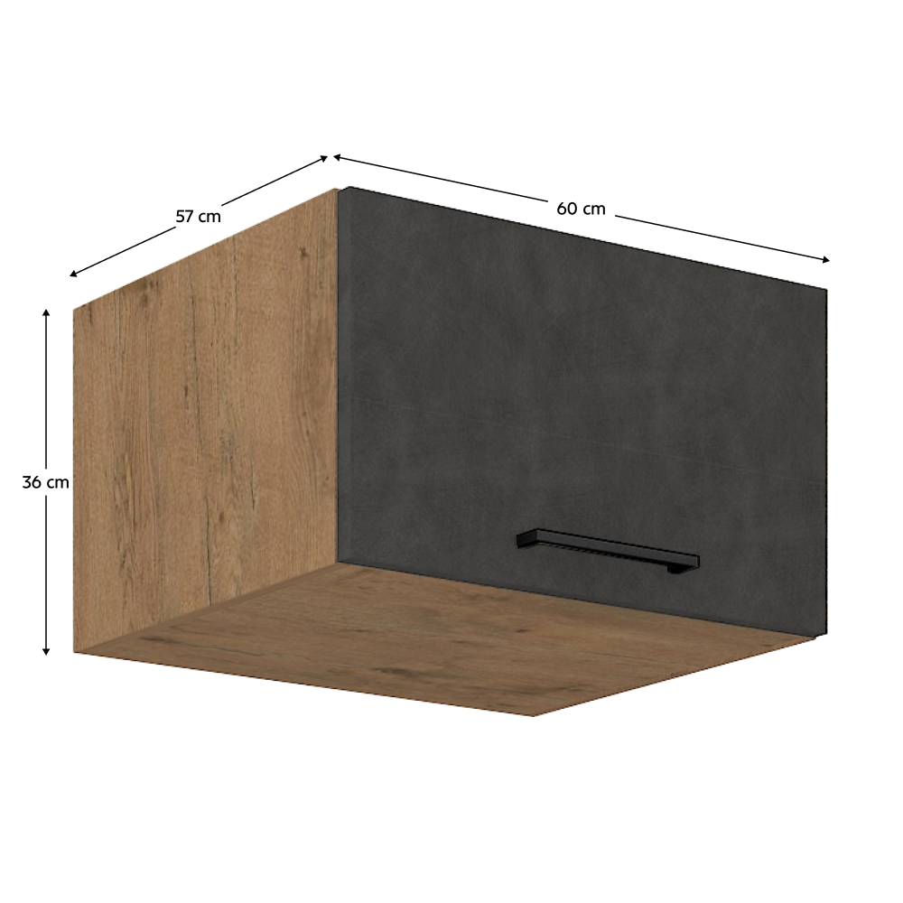 Horná skrinka Vega 60 NAGU-36 1FMateriál: DTD laminovanáFarba: dub lancelot/sivá matnáRozmery (ŠxHxV): 60x57x36 cmSystém tichého zatvárania dvierokDodávané v demonteSpodné skrinky sú dodávané vrátane dolnej lišty, bez pracovnej dosky.Možnosť dokúpenia pracovnej dosky dub lancelot v cene 55 Eur/bm. Možnosť dokúpiť univerzálny drez LAY ON.