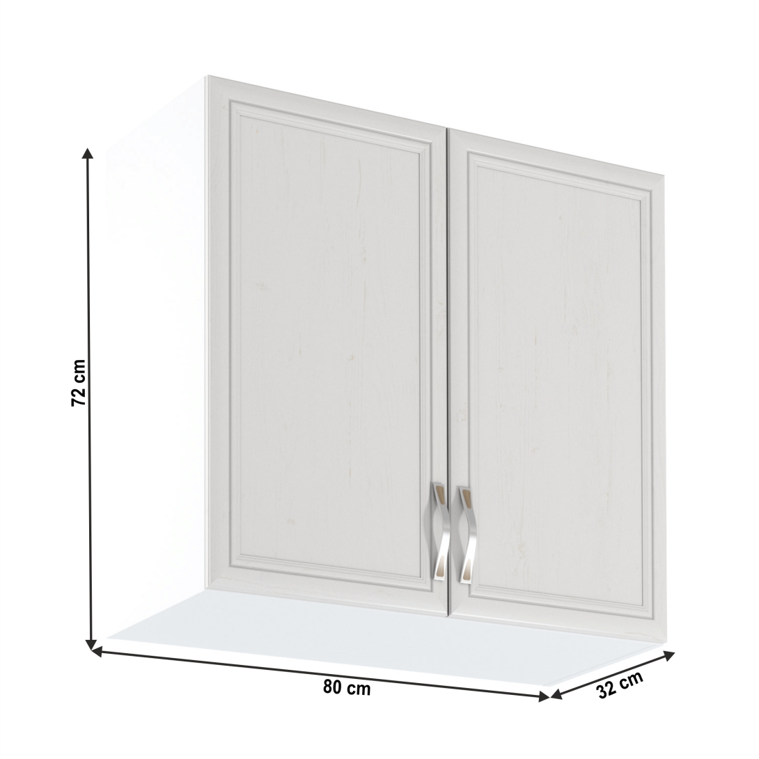 Horná skrinka G80 ku kuchyni SICILIAPrevedenie: DTD laminovaná/MDF lištyFarba: biela/sosna AndersenRozmery (ŠxHxV): 80x32x72 cmHrúbka materiálu: 15 mmSpodné skrinky ku kuchyni SICILIA sú dodávané bez pracovnej dosky. Môžete si objednať pracovnú dosku vo farebnom prevedení dub pieskovec v hrúbke 2,8 cm za 49 eur/bm a pracovnú dosku vo farebnom prevedení dub Lancelot v hrúbke 3,8 cm za 56 eur/bm.