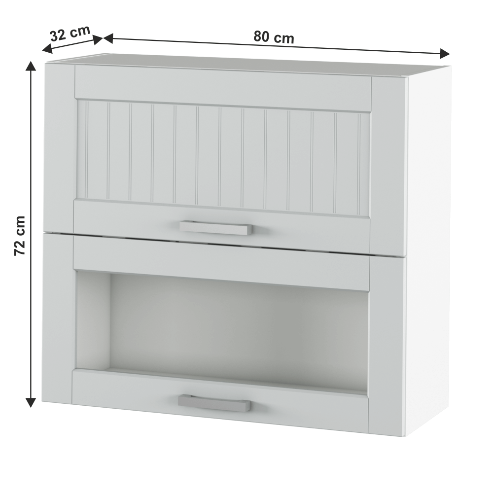 Materiál skrinka: DTD laminovaná/MDFFarba skrinka: svetlosivá/bielaMateriál úchytky: kovFarba úchytky: matný chrómRozmery (ŠxHxV): 80x32x72 cmHrúbka materiálu: 16 mmS výklopnými dvierkamiS presklennými dvierkamiS kovovými úchytkamiKvalitný slovenský výrobokDodávané v demonteSkrinky sú dodávané bez pracovnej dosky. Pracovnú dosku v prevedení gold craft oak v hrúbke 38 mm je možné doobjednať v cene 45 Eur/1 bm.