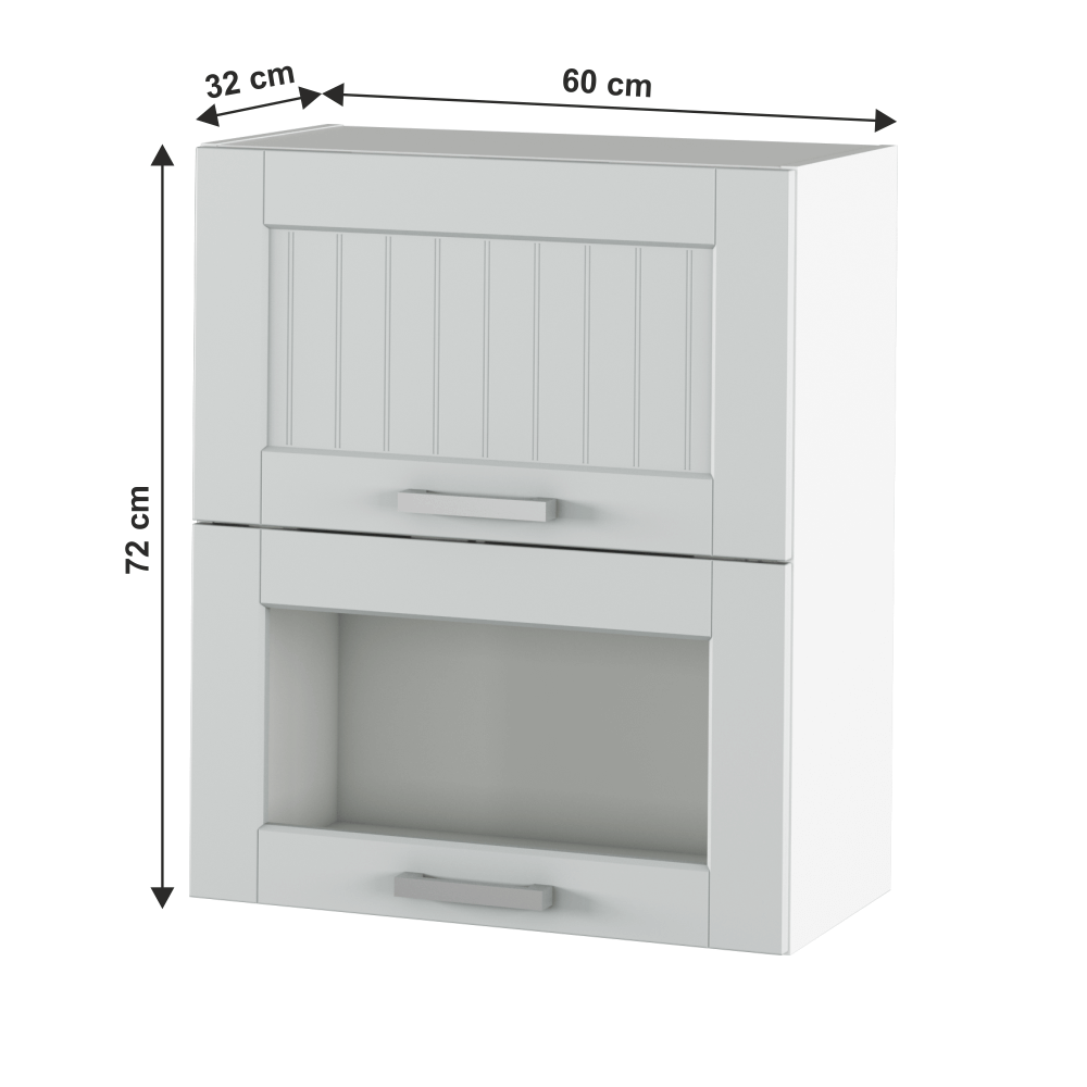 Materiál skrinka: DTD laminovaná/MDFFarba skrinka: svetlosivá/bielaMateriál úchytky: kovFarba úchytky: matný chrómRozmery (ŠxHxV): 60x32x72 cmHrúbka materiálu: 16 mmS dvierkamiVýklopné dvierkaPresklené dvierkaPolicováS kovovými úchytkamiKvalitný slovenský výrobokDodávané v demonteSkrinky sú dodávané bez pracovnej dosky. Pracovnú dosku v prevedení gold craft oak v hrúbke 38 mm je možné doobjednať v cene 45 Eur/1 bm.