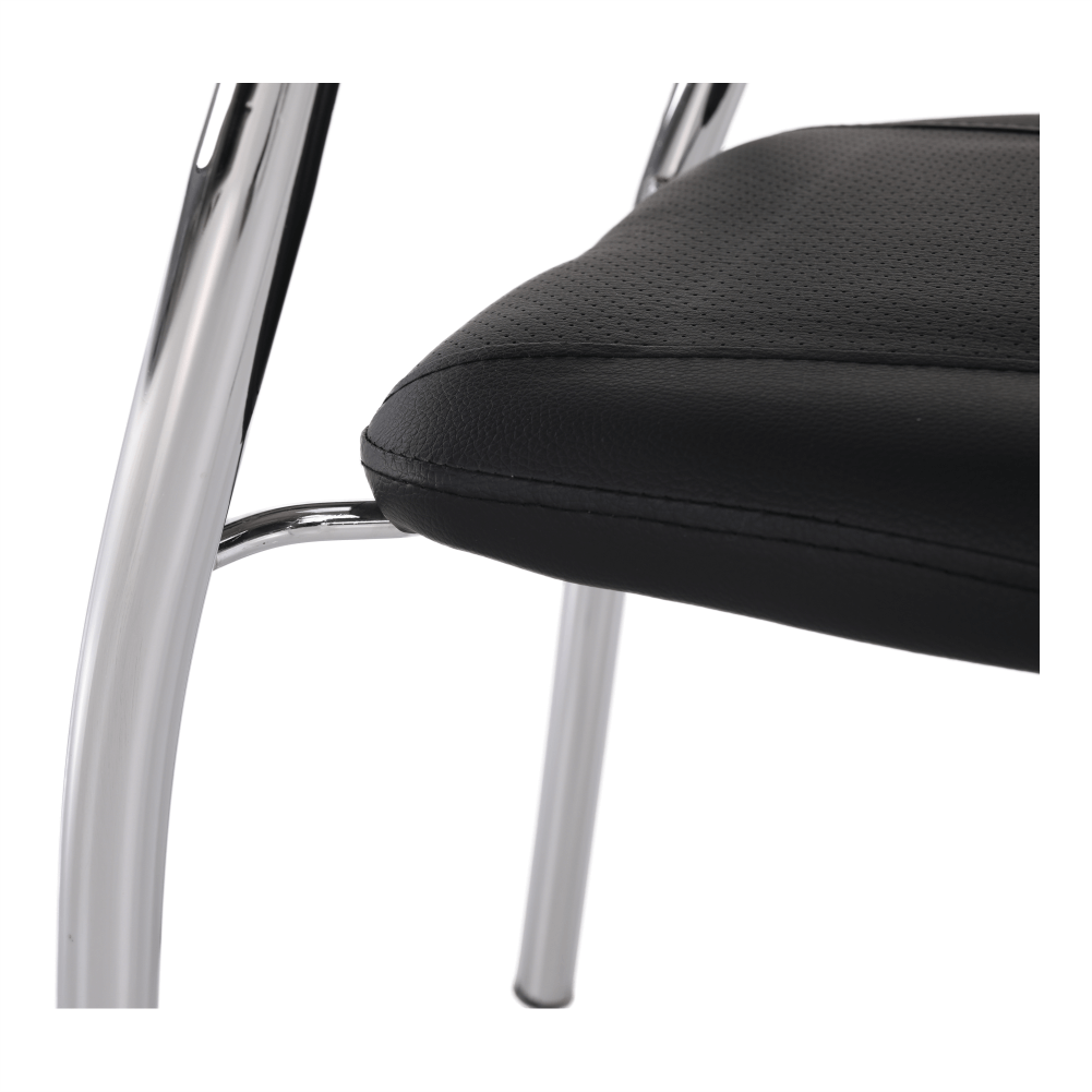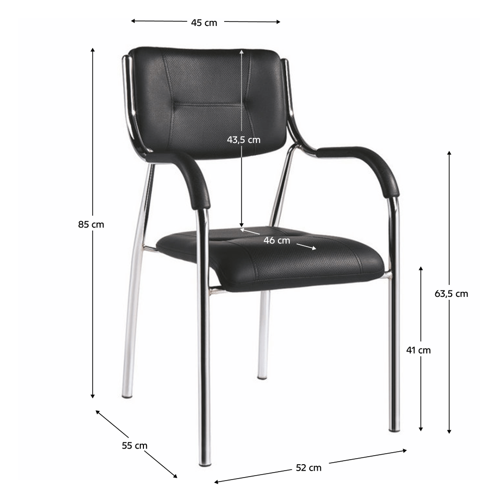 Materiál čalúnenie: ekokožaOderuodolnosť textílie podľa testu Martindale: 100 000 oderovFarba: čierna/chrómRozmery (ŠxHxV): 52x55x85 cmVýška sedu : 41 cmHĺbka sedu : 46 cmŠírka sedu: 43 cmŠírka chrbtovej opierky: 45 cmVýška chrbtovej opierky: 43,5 cmVýška od zeme po opierku na ruky: 63,5 cmNosnosť: 110 kgJeden stoh obsahuje max. 8 ks stoličiekVýška stohu pri 8 ks stoličiek je 120 cmDodávané v monte