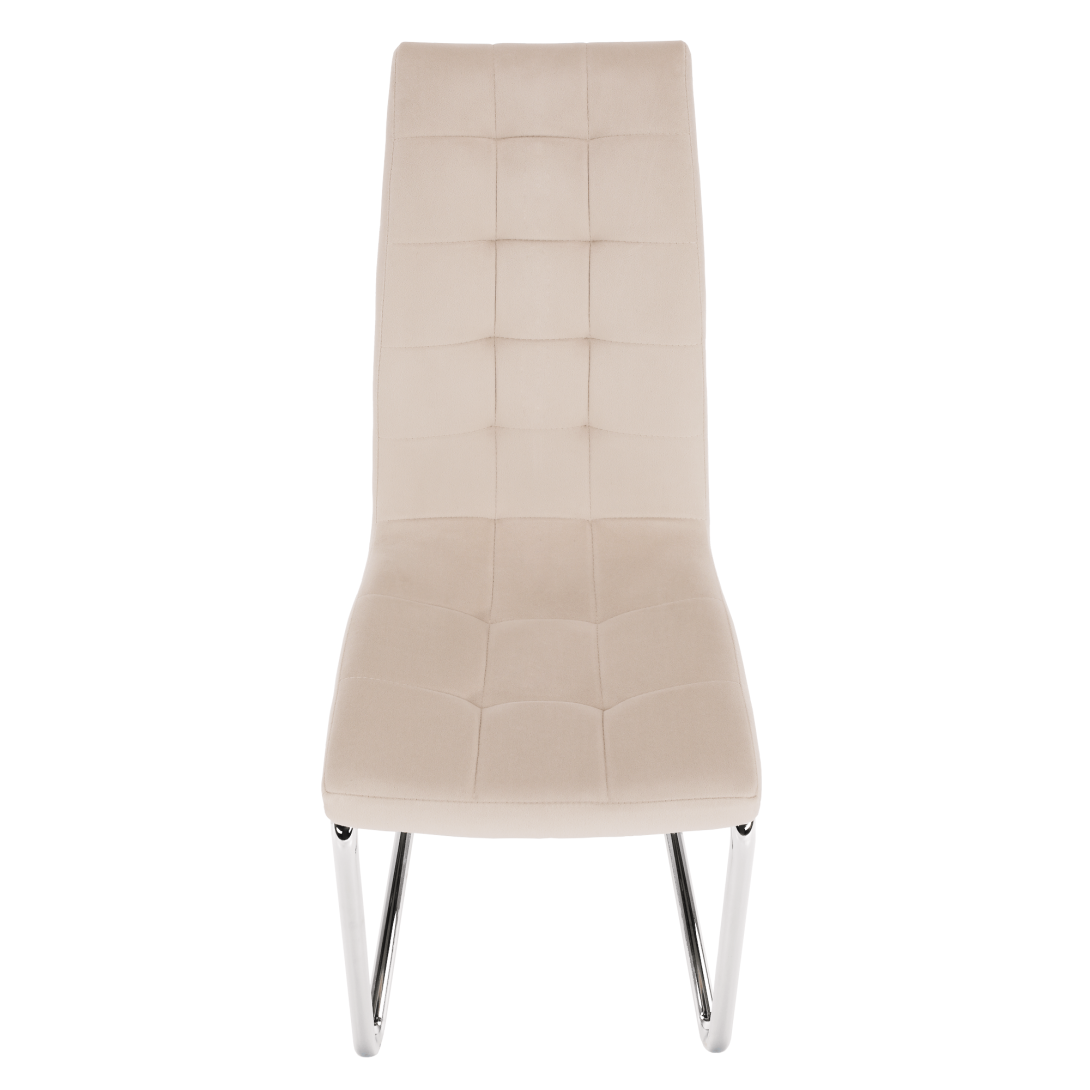 Jedálenská stolička Materiál: velvet látka vo farebnom prevedení béžová Dulux/chrómRozmery (ŠxHxV): 42x56,5x105 cmOderuodolnosť textílie podľa testu Martindale: 85 000 oderovHĺbka sedenia: 43 cmVýška sedenia: 45 cmŠírka sedenia: 42 cmNosnosť: 110 kg