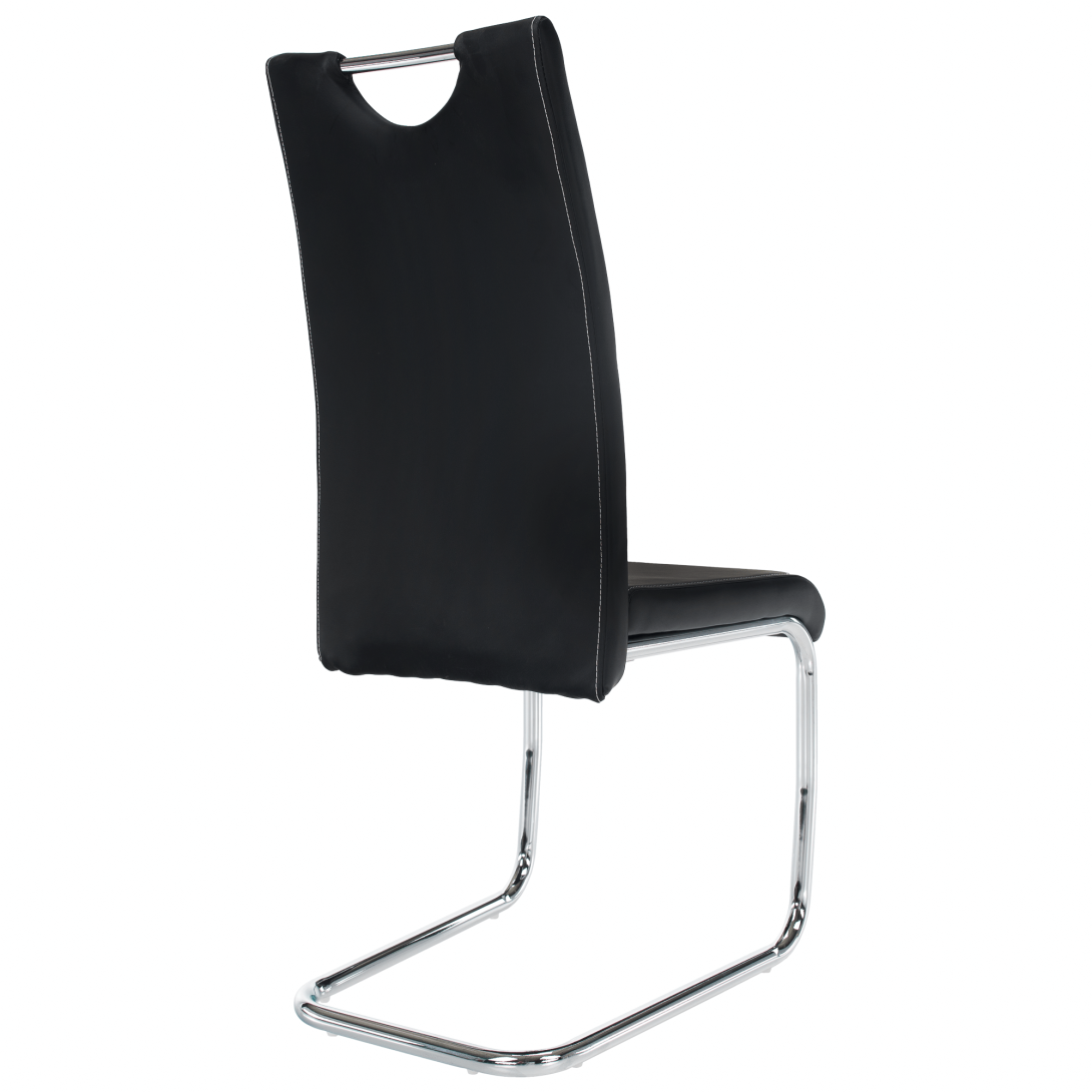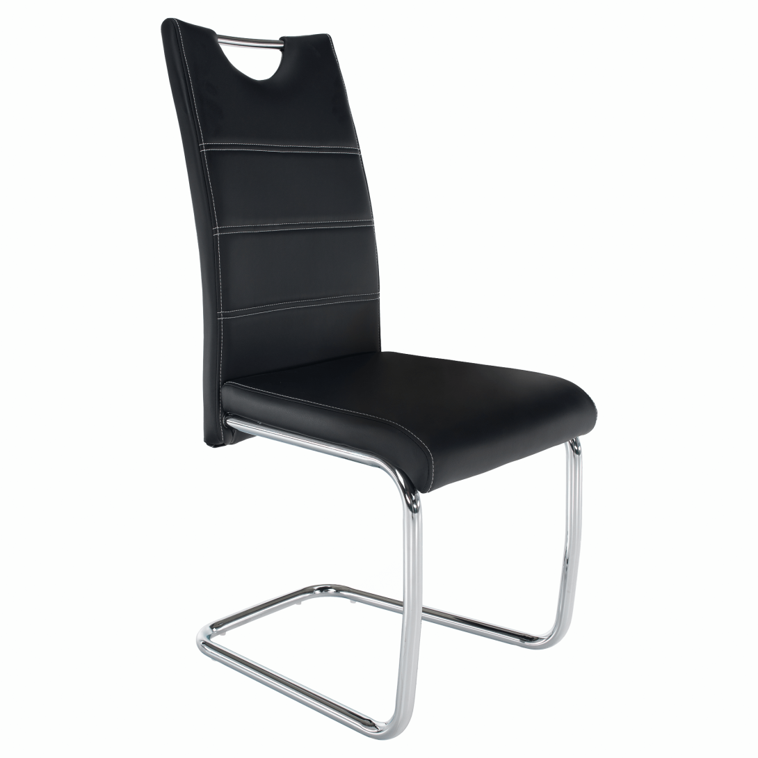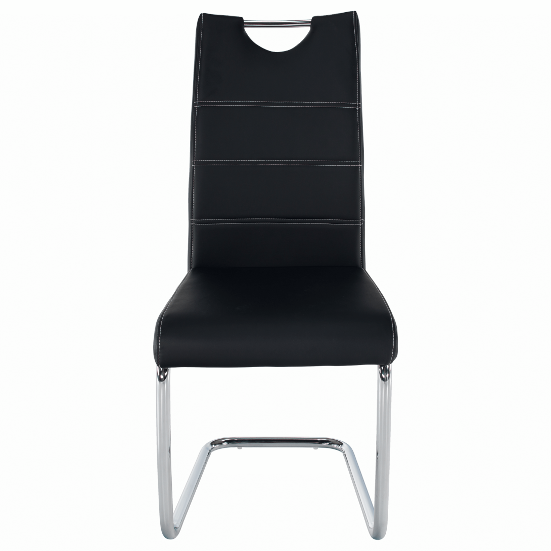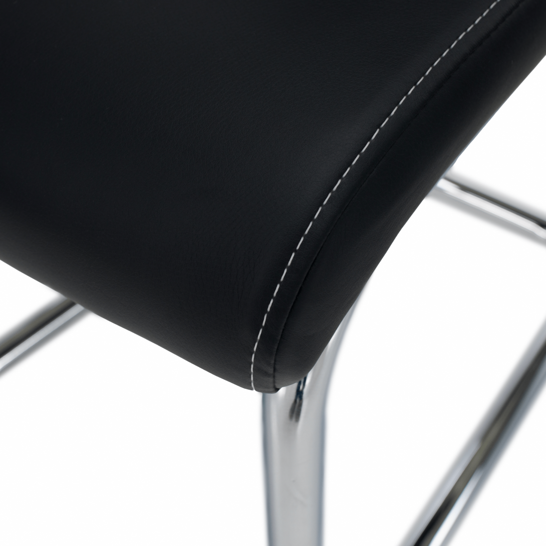 jedálenská stolička, materiál: ekokoža PU + chróm,Oderuodolnosť textílie podľa testu Martindale: 100 000 oderov farebné prevedenie: čierna. Rozmery ŠxHxV: 43x44x96 cm, výška sedu: 47 cm. Dodávané v demonte. Nosnosť: 110 kg