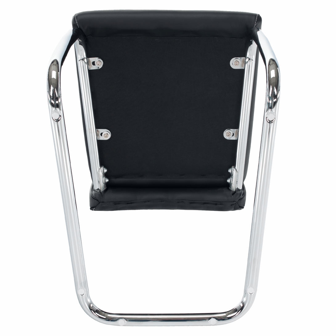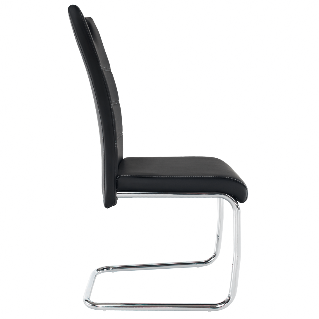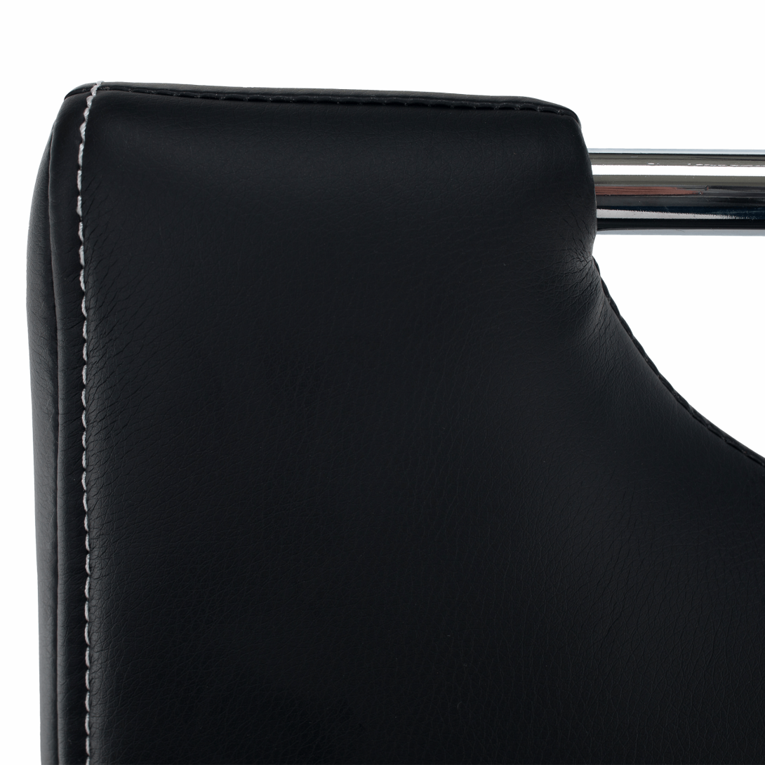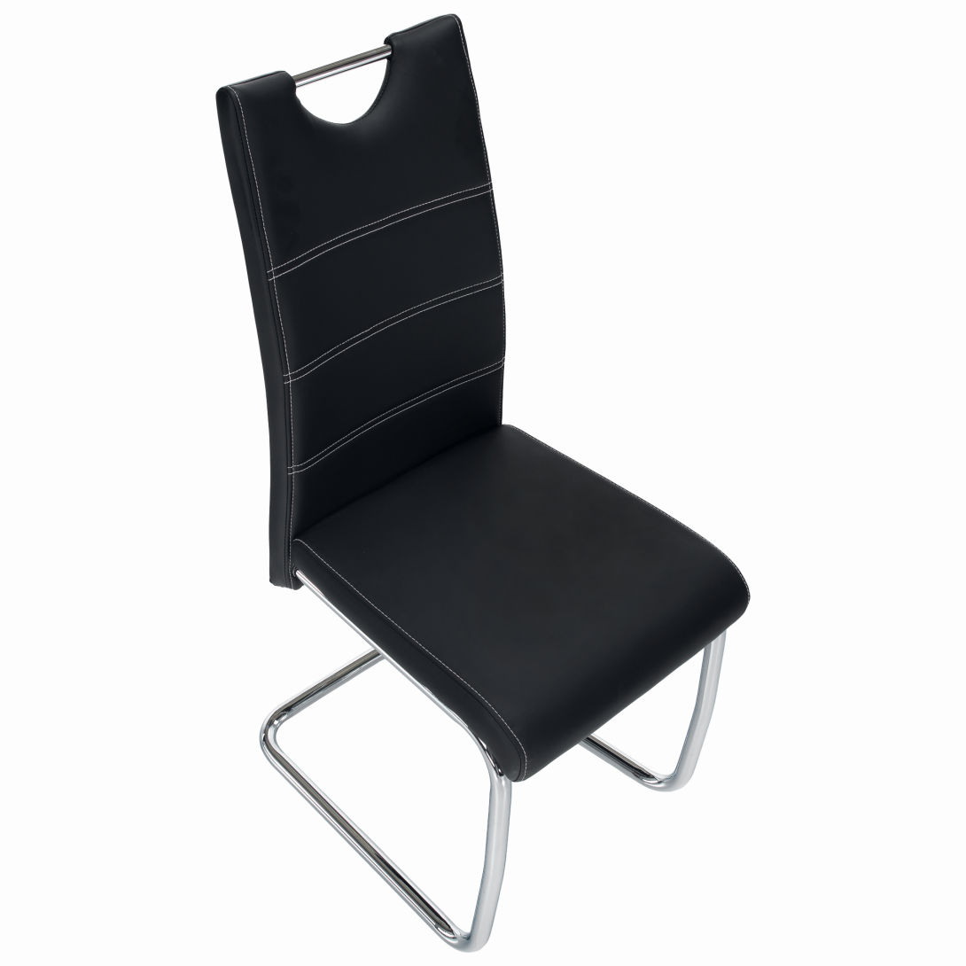 jedálenská stolička, materiál: ekokoža PU + chróm,Oderuodolnosť textílie podľa testu Martindale: 100 000 oderov farebné prevedenie: čierna. Rozmery ŠxHxV: 43x44x96 cm, výška sedu: 47 cm. Dodávané v demonte. Nosnosť: 110 kg
