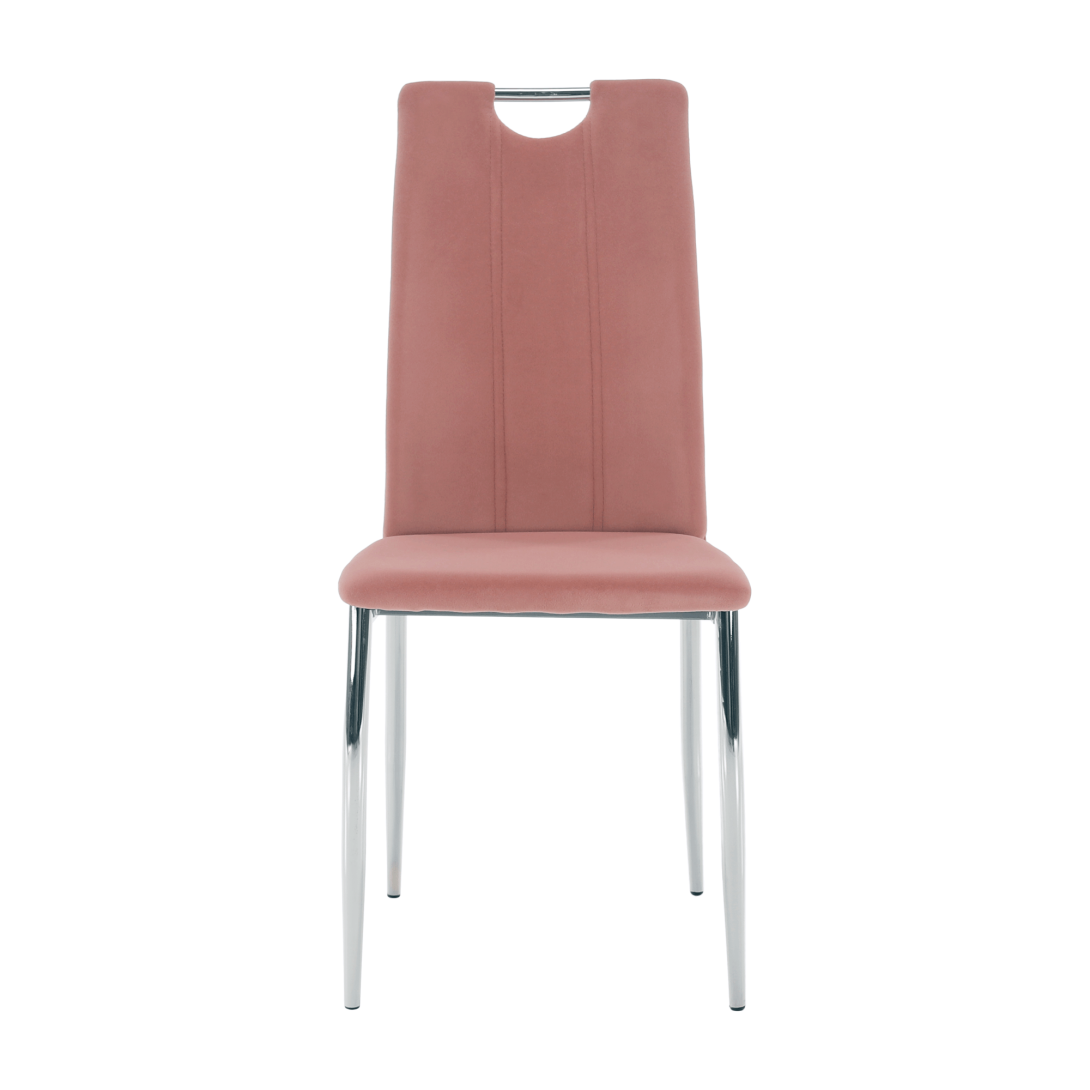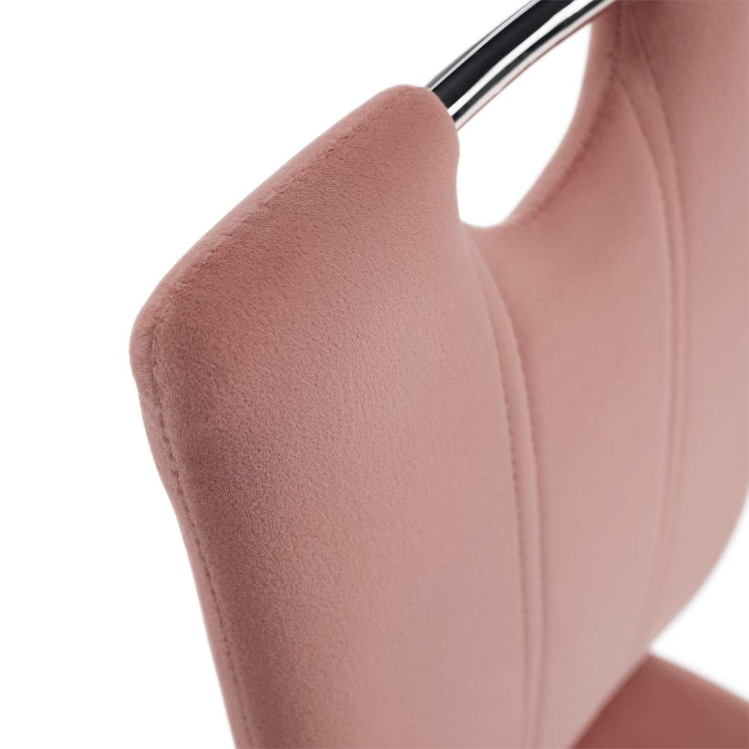 Jedálenská stolička OLIVA NEW Material: Velvet látka/chrómFarba: ružová/chrómOderuodolnosť textílie podľa testu Martindale: 85 000 oderovRozmery (ŠxHxV): 42x52x97 cmHĺbka sedu: 40 cmVýška sedu: 46 cmŠírka sedu: 42 cmNosnosť: 110 kgDodávané v demonte.