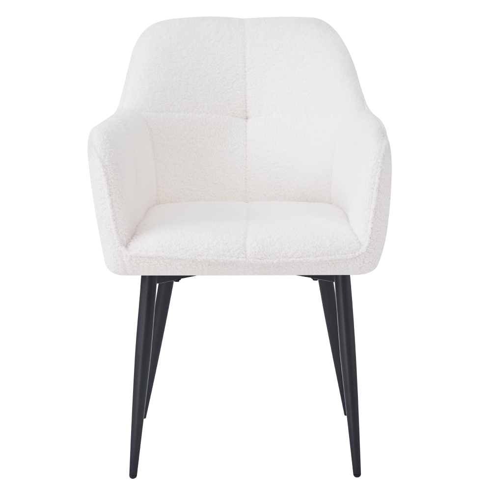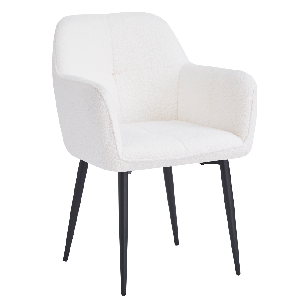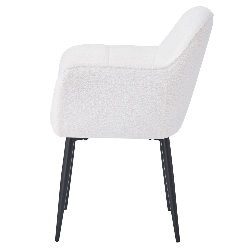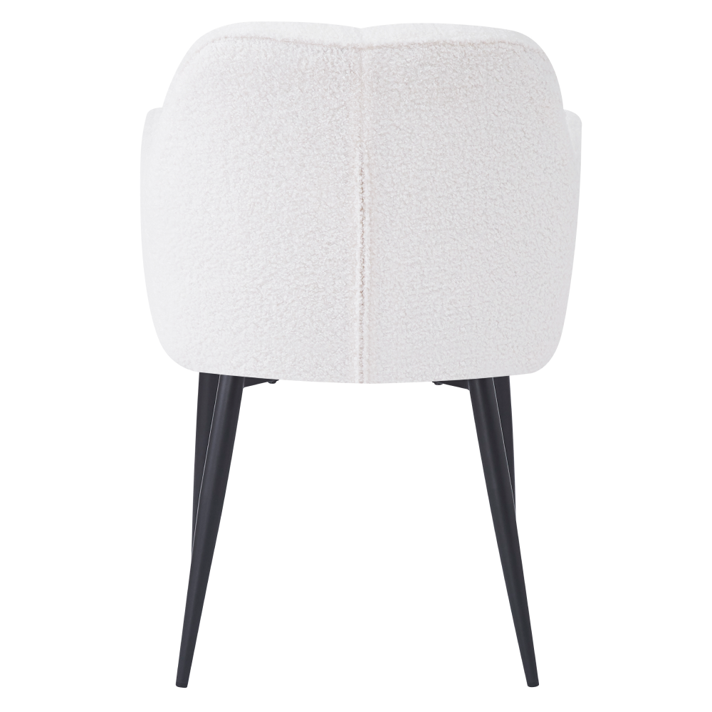Materiál: látka Bouclé/kovOderuodolnosť textílie podľa testu Martindale: 45 000 oderovFarba: biela/čiernaRozmery (ŠxHxV): 57x61x84 cmVýška sedu: 44 cmHĺbka sedu: 45 cmŠírka sedu: 44 cmŠírka chrbtovej opierky: 44 cmVýška chrbtovej opierky: 40 cmOpierky na rukyDekoratívne prešívanéDizajnovéNosnosť: 90 kgDodávané v demonte
