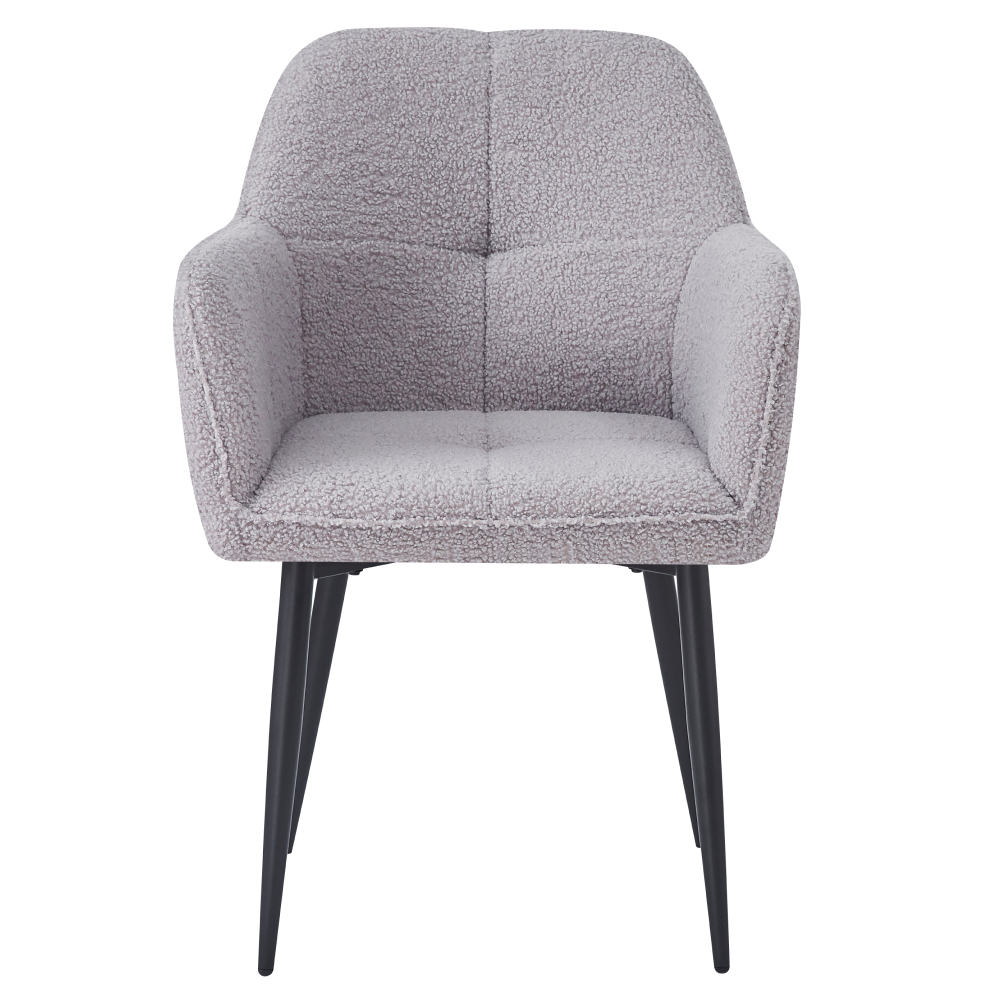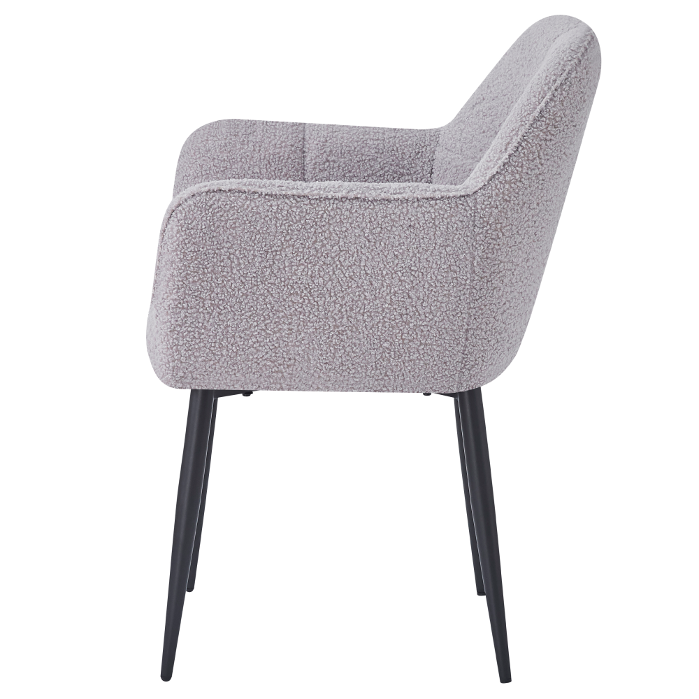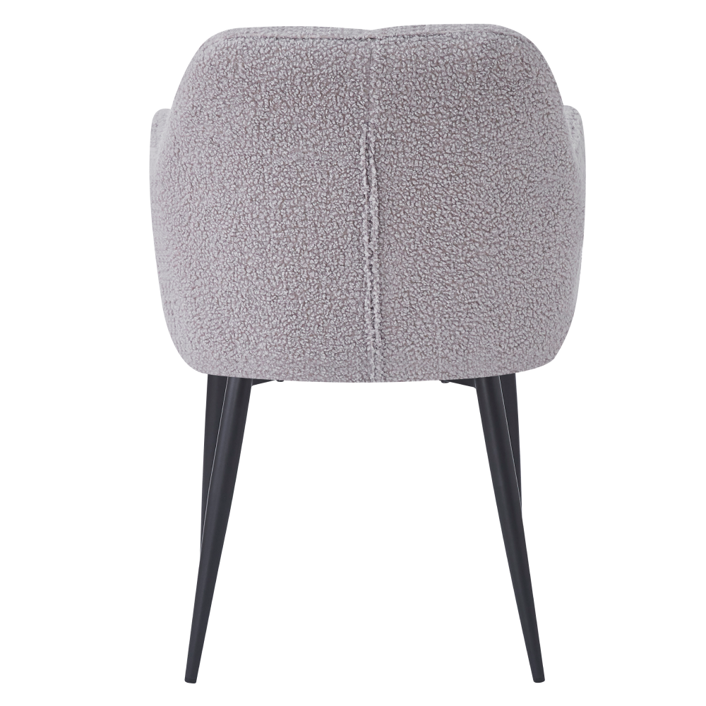 Materiál: látka Bouclé/kovOderuodolnosť textílie podľa testu Martindale: 45 000 oderovFarba: sivá/čiernaRozmery (ŠxHxV): 57x61x84 cmVýška sedu: 44 cmHĺbka sedu: 45 cmŠírka sedu: 44 cmŠírka chrbtovej opierky: 44 cmVýška chrbtovej opierky: 40 cmOpierky na rukyDekoratívne prešívanéDizajnovéNosnosť: 90 kgDodávané v demonte