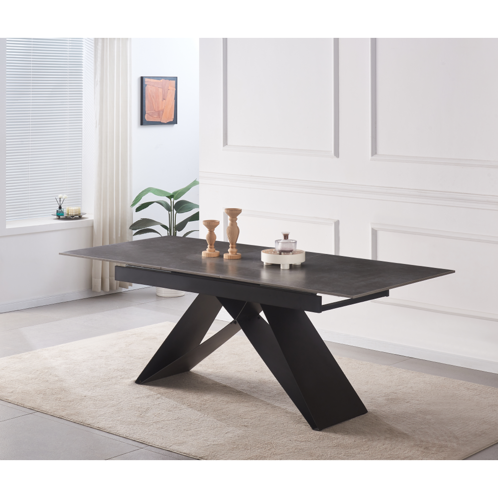 Materiál doska stola: keramikaFarba: betónKonštrukcia nohy: kovFarba: čiernaRozmery (ŠxHxV): 160-200x90x75 cm Hrúbka materiálu vrchnej dosky: 1,2 cmPraktickýVhodný pre 6-8 osôbNosnosť: 25 kgDodávané v demonte