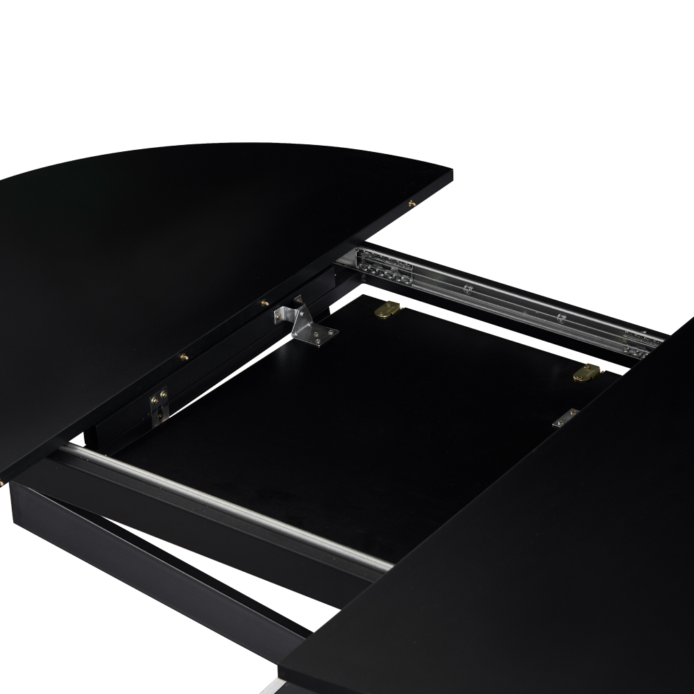 Materiál doska stola: MDFFarba: čiernaKonštrukcia nohy: kovFarba: čiernaRozmery (ŠxHxV): 100x100-140x75 cm Hrúbka materiálu vrchnej dosky: 1,8 cmOkrúhlyPraktickýVhodný pre 4-6 osôbNosnosť: 25 kgDodávané v demonte