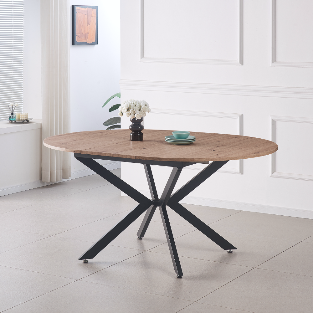 Materiál doska stola: MDFFarba: dub artisanKonštrukcia nohy: kovFarba: čiernaRozmery (ŠxHxV): 120x120-160x75 cm Hrúbka materiálu vrchnej dosky: 1,8 cmOkrúhlyPraktickýVhodný pre 4-6 osôbNosnosť: 25 kgDodávané v demonte