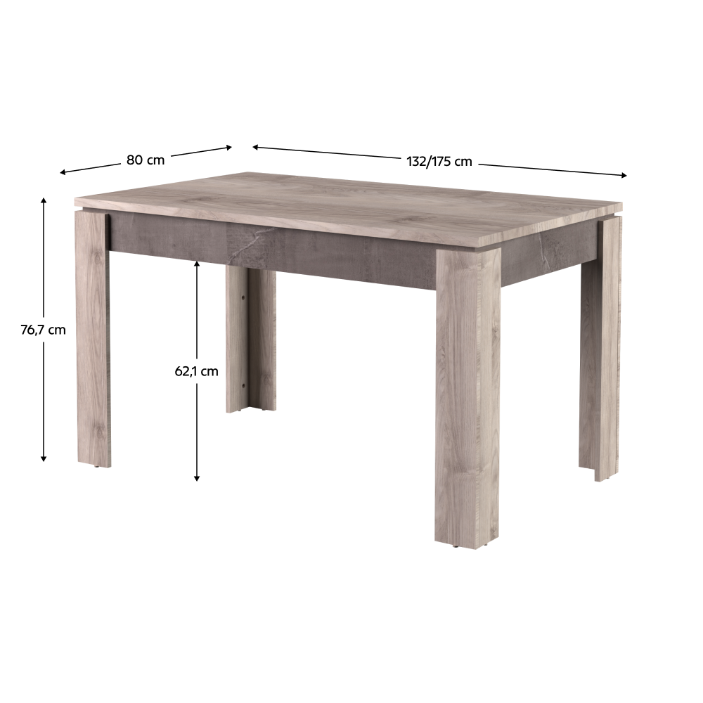 Materiál: DTD laminovanáFarba: gaštan nairobi/onyxRozmery (ŠxHxV): 132/175x80x76,7 cmHrúbka materiálu: 1,6-2,2 cmPlastové nožičkyRozkladacíPre 6-8 osôbModerný dizajnDodávané v demonte