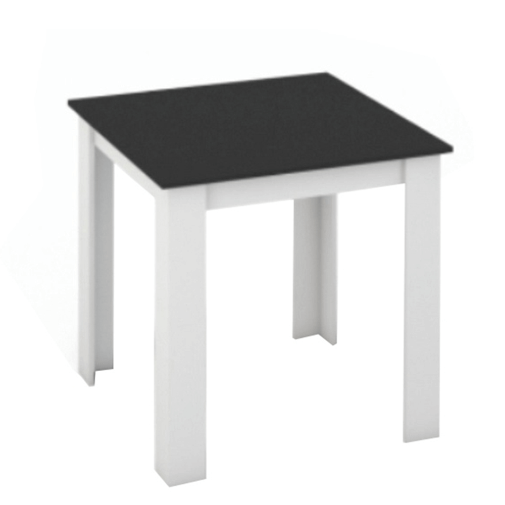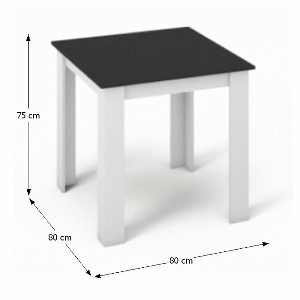 Jedálenský stôl KRAZ Materiál: DTD laminovaná/ABS hranyPrevedenie: čierna/bielaRozmery (ŠxHxV): 80x80x75 cm Hrúbka materiálu: 16 mm Vhodný pre 4 osobyDodávané v demonte