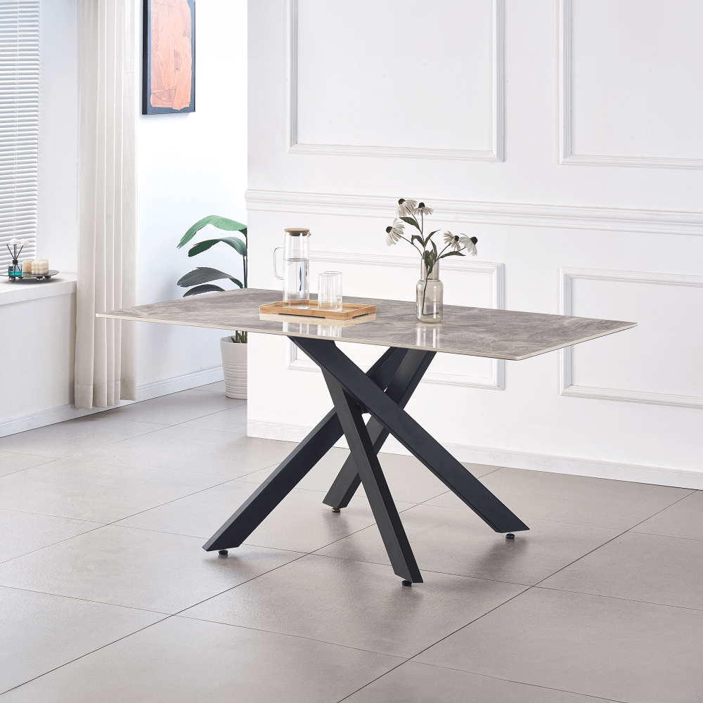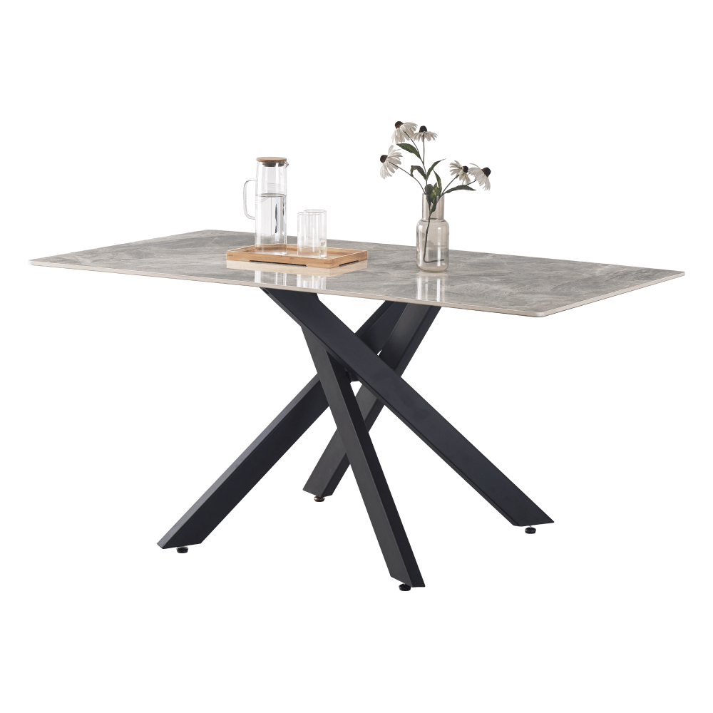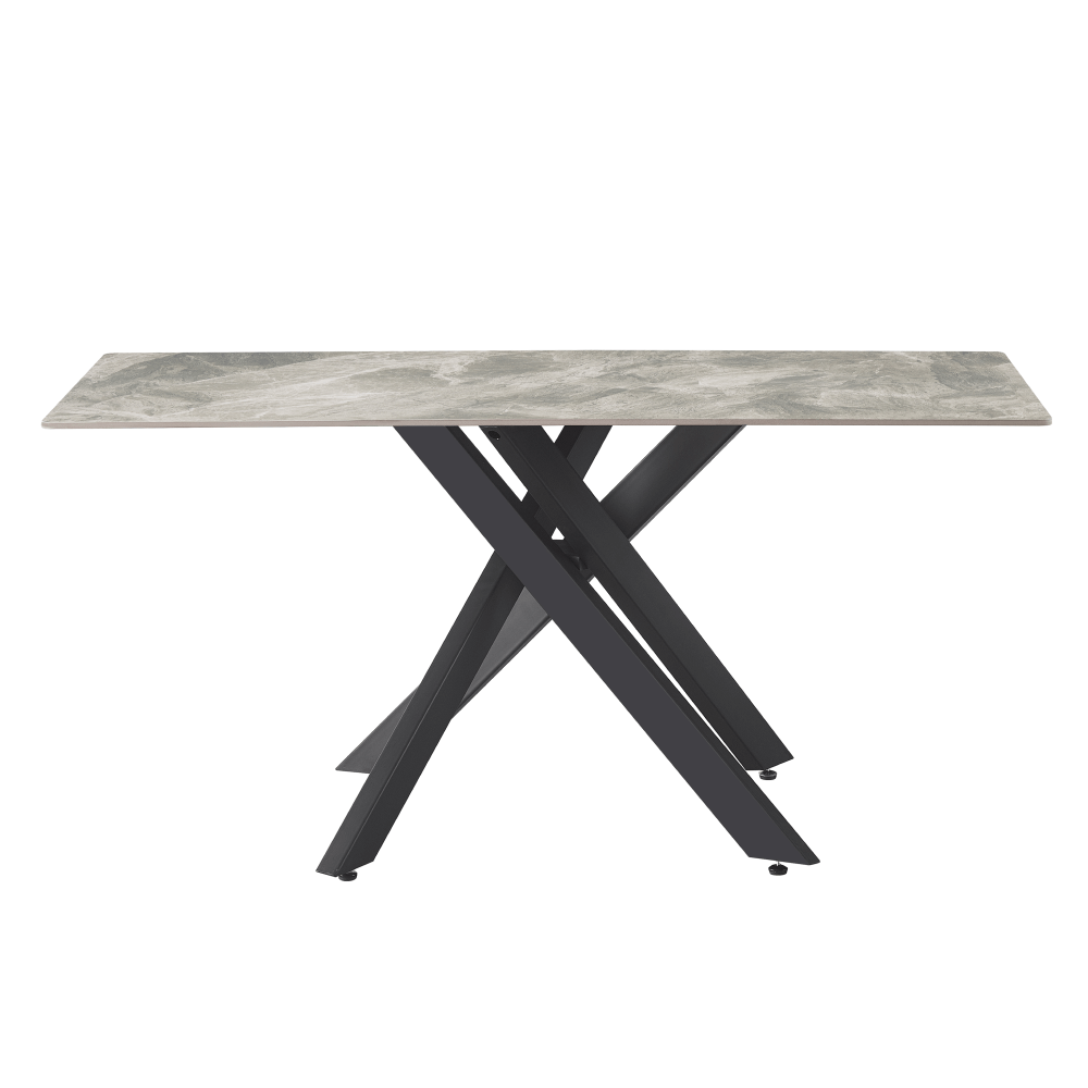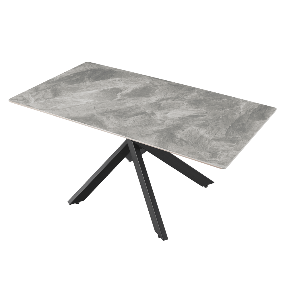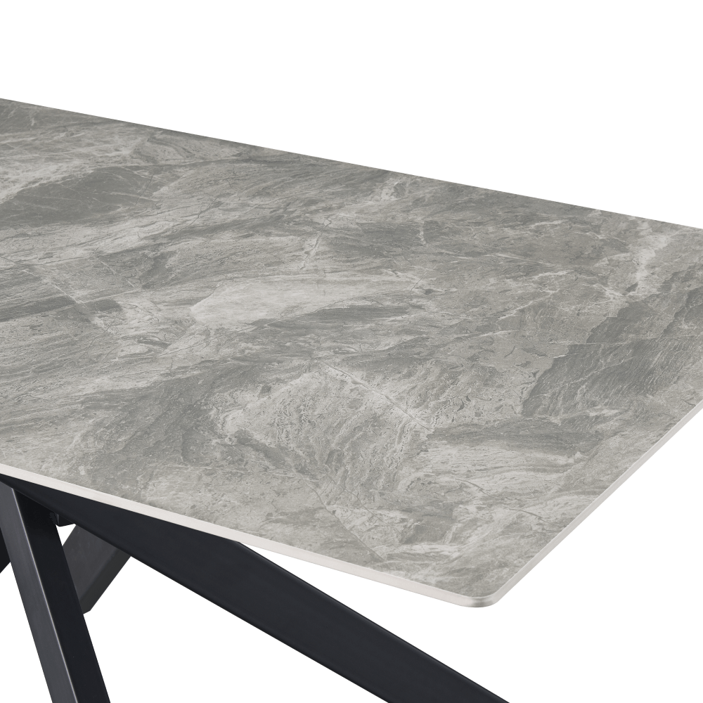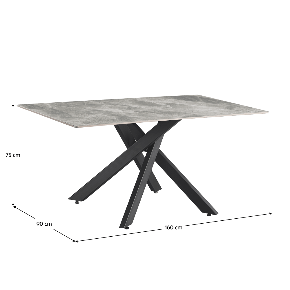 Materiál: keramika/kovFarba: svetlosivý mramor/čiernaRozmery (ŠxHxV): 160x90x75 cm Hrúbka materiálu: 1,2 cmVhodný pre 6-8 osôbStabilná kovová podnožKovové klzákyNosnosť: 25 kgDodávané v demonte