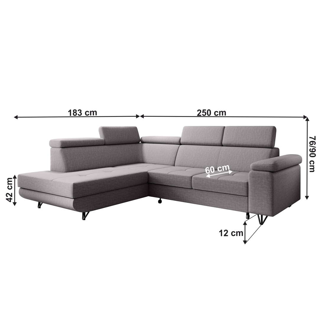Materiál: látka Soro 90Oderuodolnosť textílie podľa testu Martindale: 90 000 - 100 000 oderovFarba: svetlosiváRozmery (ŠxHxV): 250x183x76/90 cmVýška sedu: 42 cmHĺbka sedu: 60 cmVýška spodného priestoru od podlahy: 12 cmRozkladaciaPlocha na spanie (ŠxD): 130x195 cmVýška chrbtovej opierky: 50 cmŠírka otomanu: 91 cmOpierka na ruku (HxV): 23x61 cmNosnosť: 90 kgRohováS úložným priestorom5 polohovacích opierok hlavyNa kovových nožičkáchFarba nožičiek: čiernaVýplň: pružina falista/pur pena T30CeločalúnenáĽavé prevedenieDodávané v demontePonúkame vám možnosť objednať si sedačku v 7 farebných prevedeniach látky Soro v cene: 1025 Eur. Pri individuálnej objednávke je potrebné zaplatiť 10% zálohu z danej sumy. Po uhradení zálohy bude Vaša požiadavka zadaná do výroby. Doba dodania 6-8 týždňov.