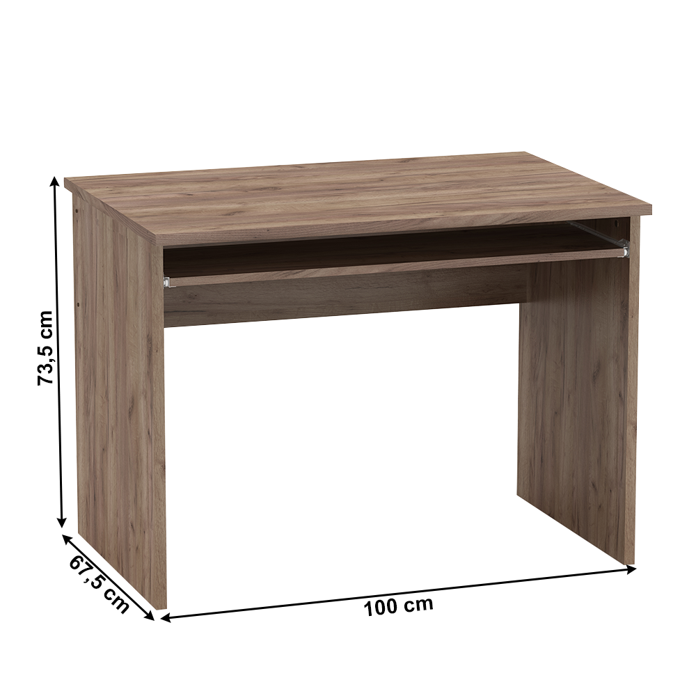 Kancelársky písací stôl JOHAN 2 NEW 02Farebné prevedenie: kraft dunkelMateriál: DTD laminovaná/ABS hranyRozmery (ŠxHxV): 100x67,5x73,5 cm Hrúbka materiálu: 16/22 mm Nosnosť stola: max 35 kgSlovenský výrobokDodávané v demonte