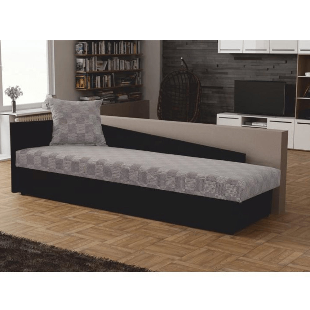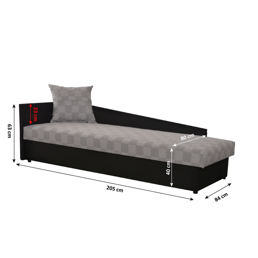 moderná váľanda s úložným priestorom, Ľ prevedenie, kvalitné bonelové sedenie, materiál: látka Mura 100Oderuodolnosť textílie Mura podľa testu Martindale: 80 000 oderovOderuodolnosť textílie Vzor M35 podľa testu Martindale: 50 000 oderovčierna/látka vzor M35, rozmery: ŠxVxH: 205x63x84 cm, plocha na spanie: ŠxD: 80x200 cm, výška x hĺbka sedenia: 40x80 cm. Nosnosť: 90 kg