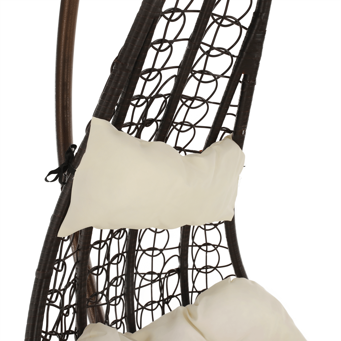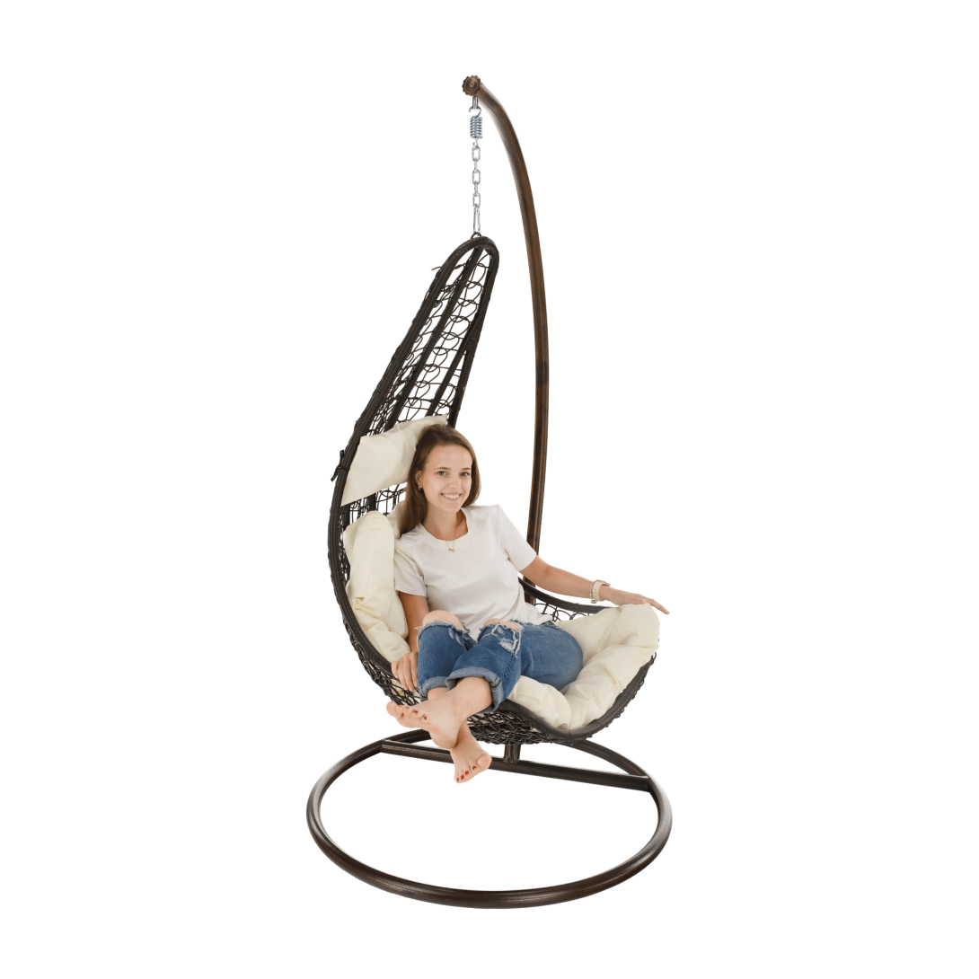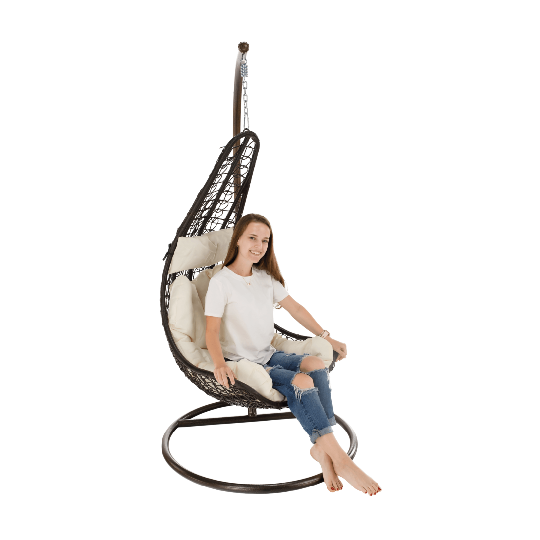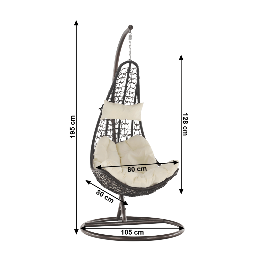 Materiál: oceľ/látka/umelý ratanOderuodolnosť textílie podľa testu Martindale: 95 000 oderovZávesné kreslo KALEA 2 NEW vhodné do exteriéru aj interiéruFarebné prevedenie: hnedý rám/hnedý ratan/vankúš krémováRozmer so stojanom (ŠxHxV): 105x105x195 cmRozmery kreslo (ŠxHxV): 80x80x128 cmVýška rámu: 195 cmMaximálna nosnosť 130 kgV exteriéri doporučujeme zabezpečiť kreslo ochranným krytom alebo plachtouDodávané s vankúšmiStojan je súčasťou baleniaDodávané v demonte