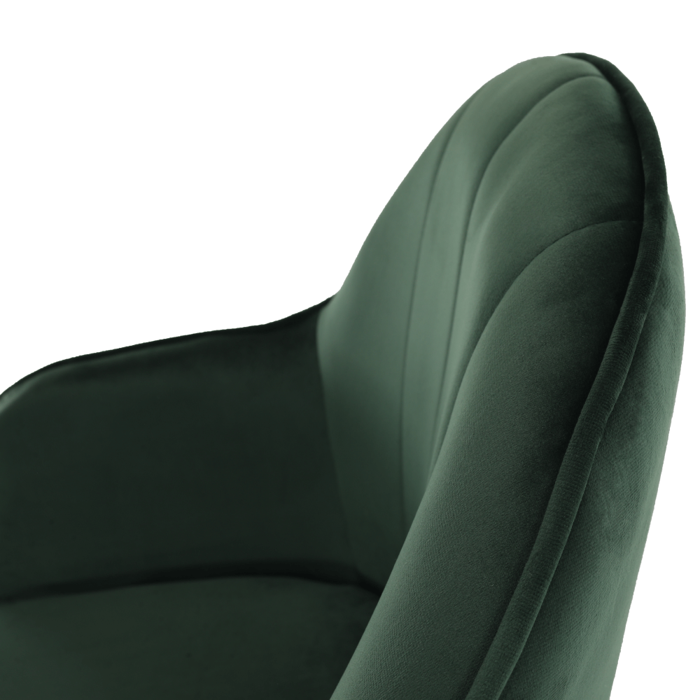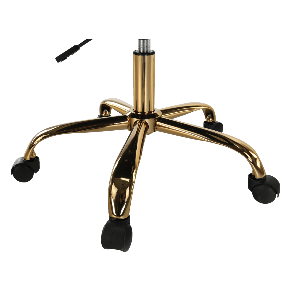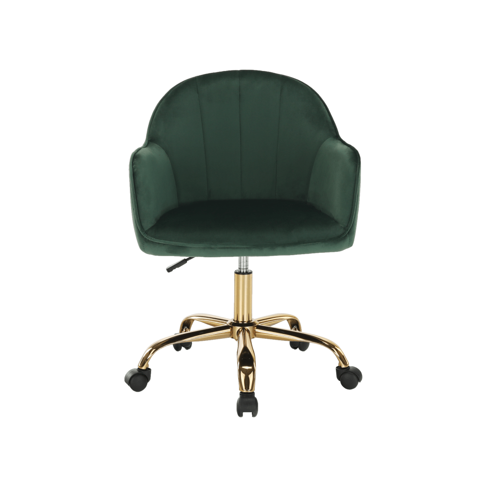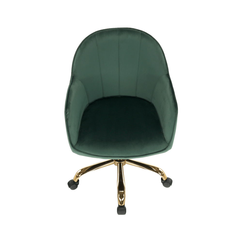 Materiál: Velvet látka/kovFarba: zelená/zlatáRozmery (ŠxHxV): 59x62x82/92 cmNastavenie výšky kreslaNastaviteľná výška sedu: 45-54 cmHĺbka sedu: 46,5 cmŠírka sedu: 46 cmŠírka chrbtovej opierky: 54 cmVýška chrbtovej opierky: 43 cmMaximálna nosnosť: 110 kgOtáčavéPäťcípa ružicaNa kolieskachDodávané v demonte