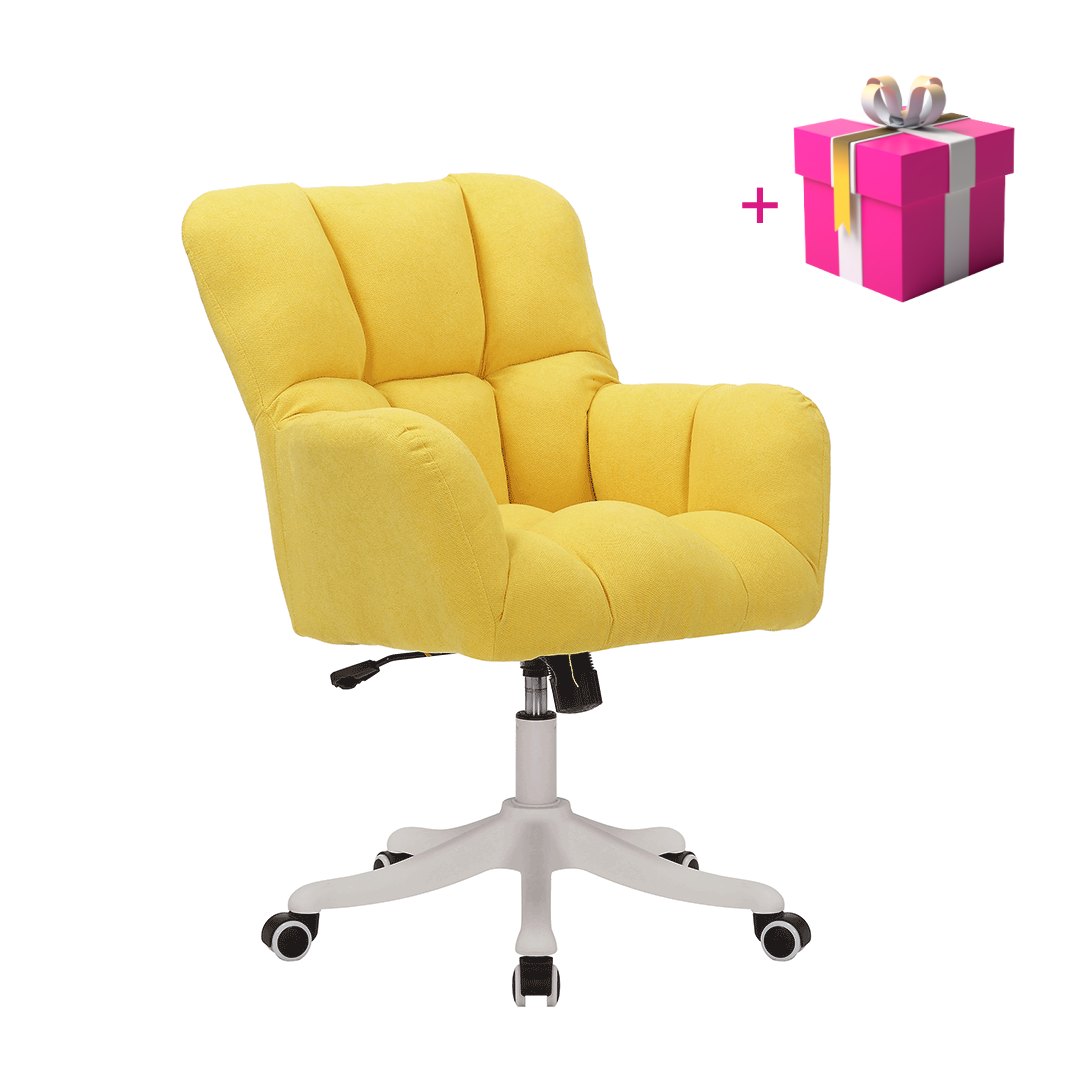 Materiál konštrukcia: kovFarba: bielaMateriál čalúnenie: látkaOderuodolnosť látky podľa testu Martindale: 80.000 oderovFarba: žltáRozmery (ŠxHxV): 64x67x89,5-99,5 cmNastaviteľná výška sedu: 53-63 cmŠírka sedu: 47 cmHĺbka sedu: 41 cmVýška chrbtovej opierky: 47 cmŠírka chrbtovej opierky: 57 cmMaximálna nosnosť: 110 kgS piestomOpierky na rukyDekoratívne šitie na operadle a sedadlePlastová päťramenná podstavaUniverzálne kolieska vhodné na mäkké aj tvrdé podlahyFunkcia hojdaniaDodávané v demont