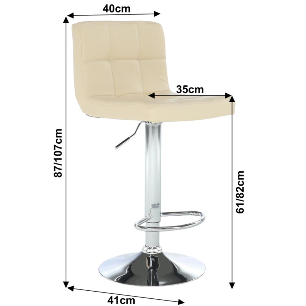 Barová stolička KANDY NEWMateriál: ekokoža/chrómOderuodolnosť textílie podľa testu Martindale: 100 000 oderovFarba: béžováRozmery (ŠxHxV): 40x41x87x107 cmvýška sedu: 61x82 cmHĺbka sedu: 37 cmNosnosť 100kgDodávané v demonte.