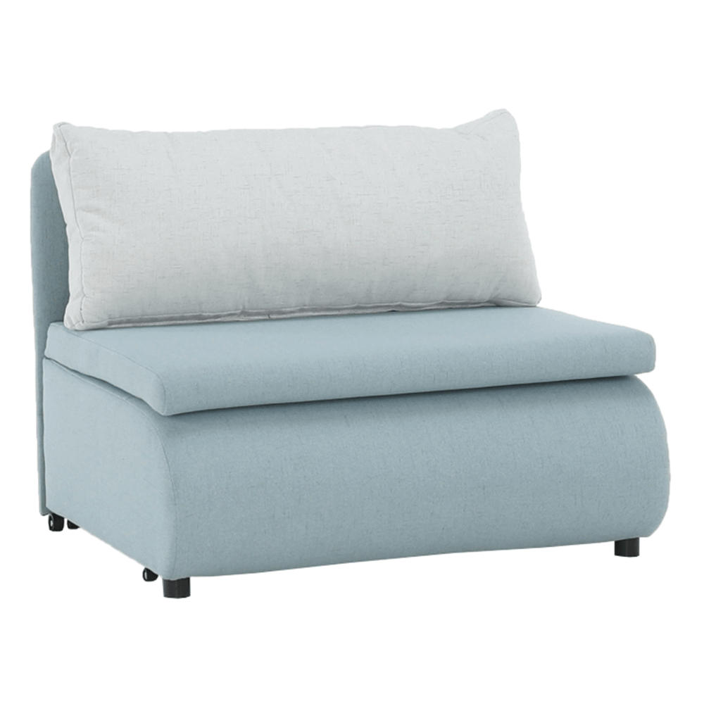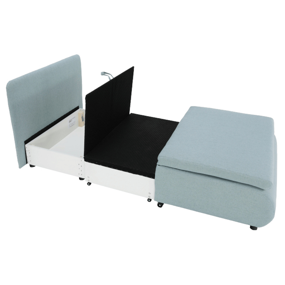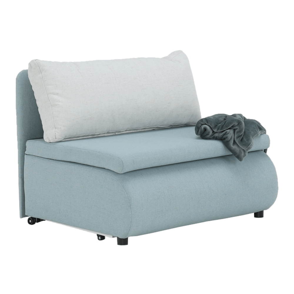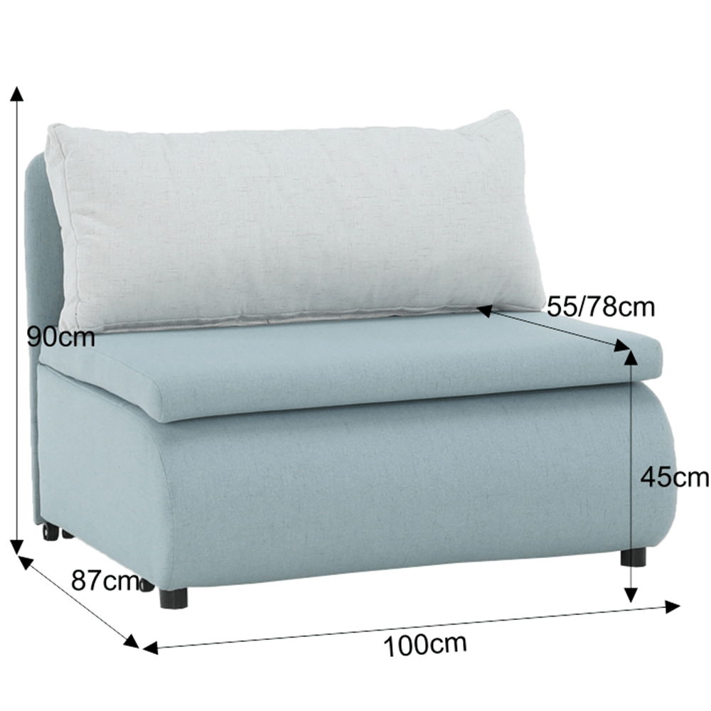 Moderné rozkladacie kreslo KENY New s úložným priestorom, materiál: látka Cablo mentolová 10/krémová 01 Oderuodolnosť textílie podľa testu Martindale: 72 000 oderov rozmery: ŠxVxH: 100x90x87 cm, plocha na spanie: ŠxD: 100x196 cm. Výška spodného priestoru od podlahy: 5 cm Nosnosť: 70 kg