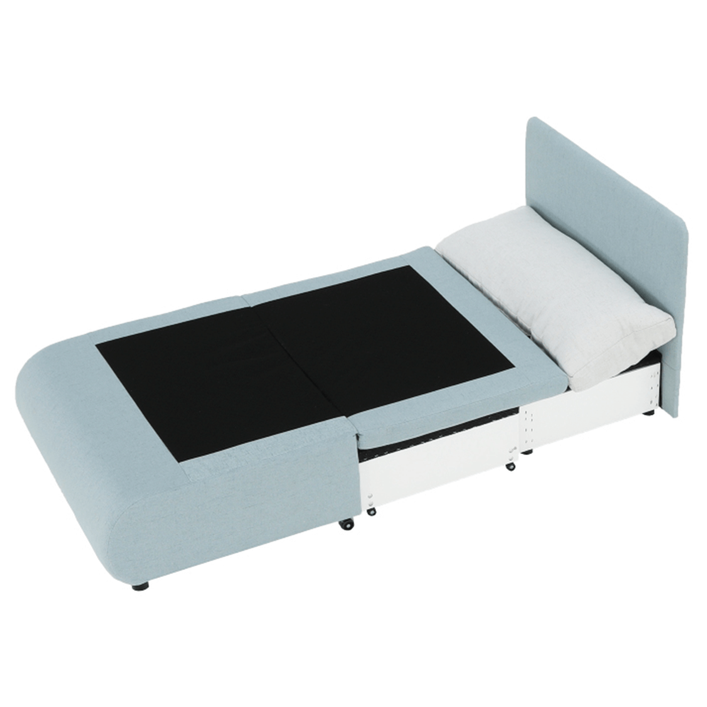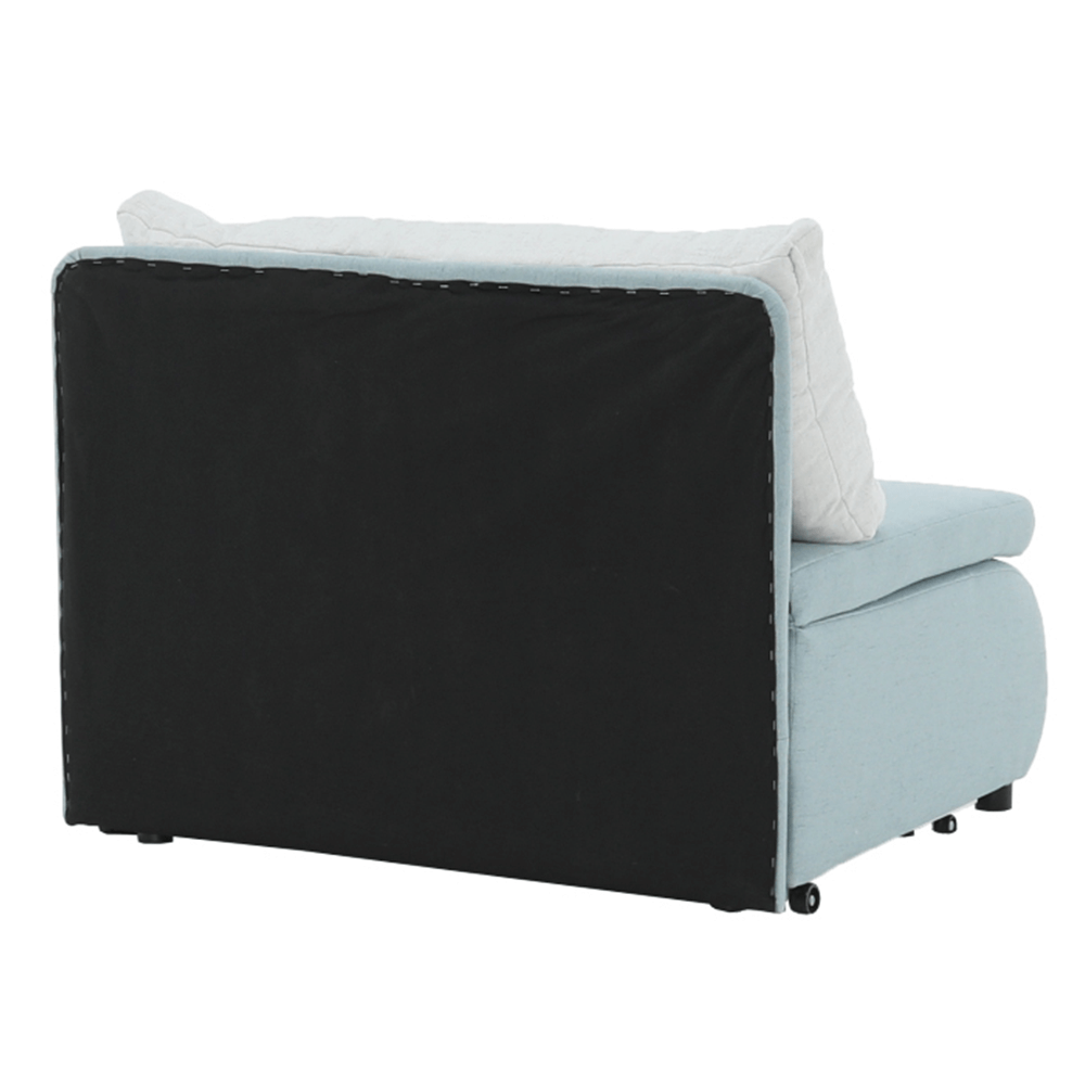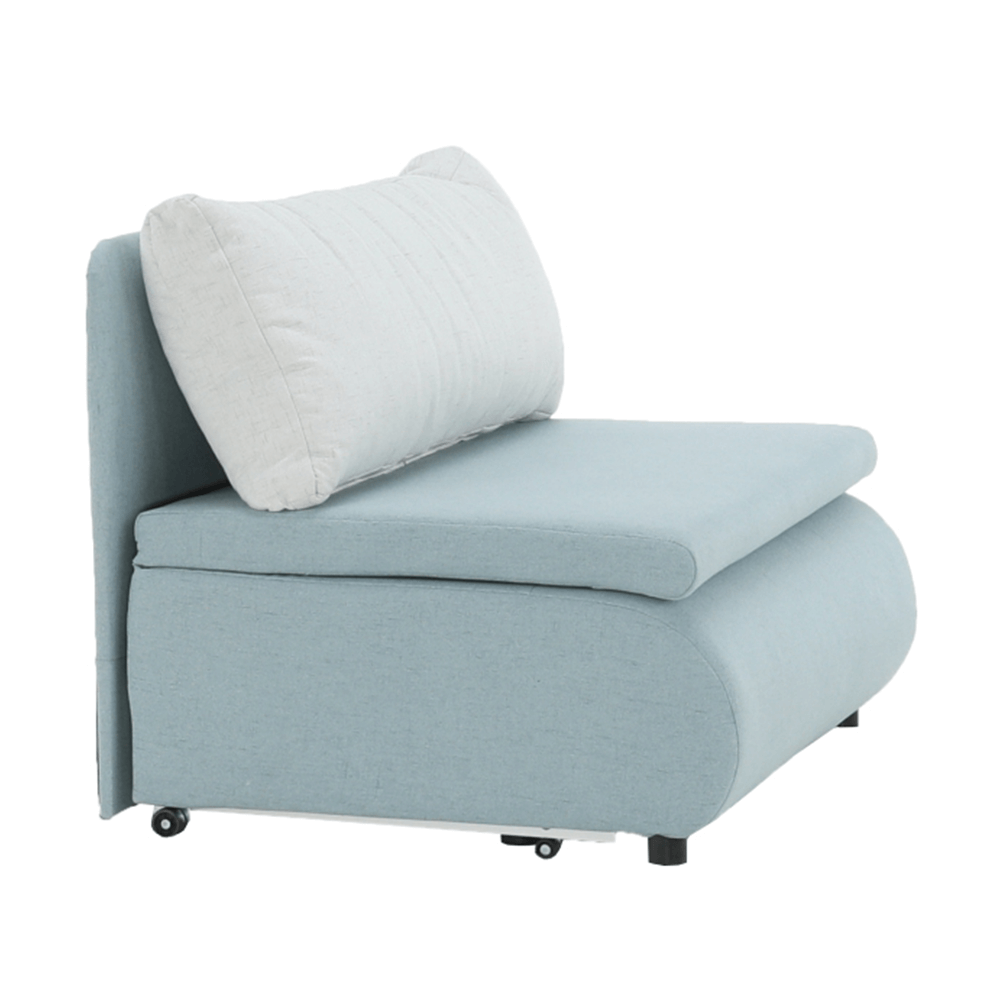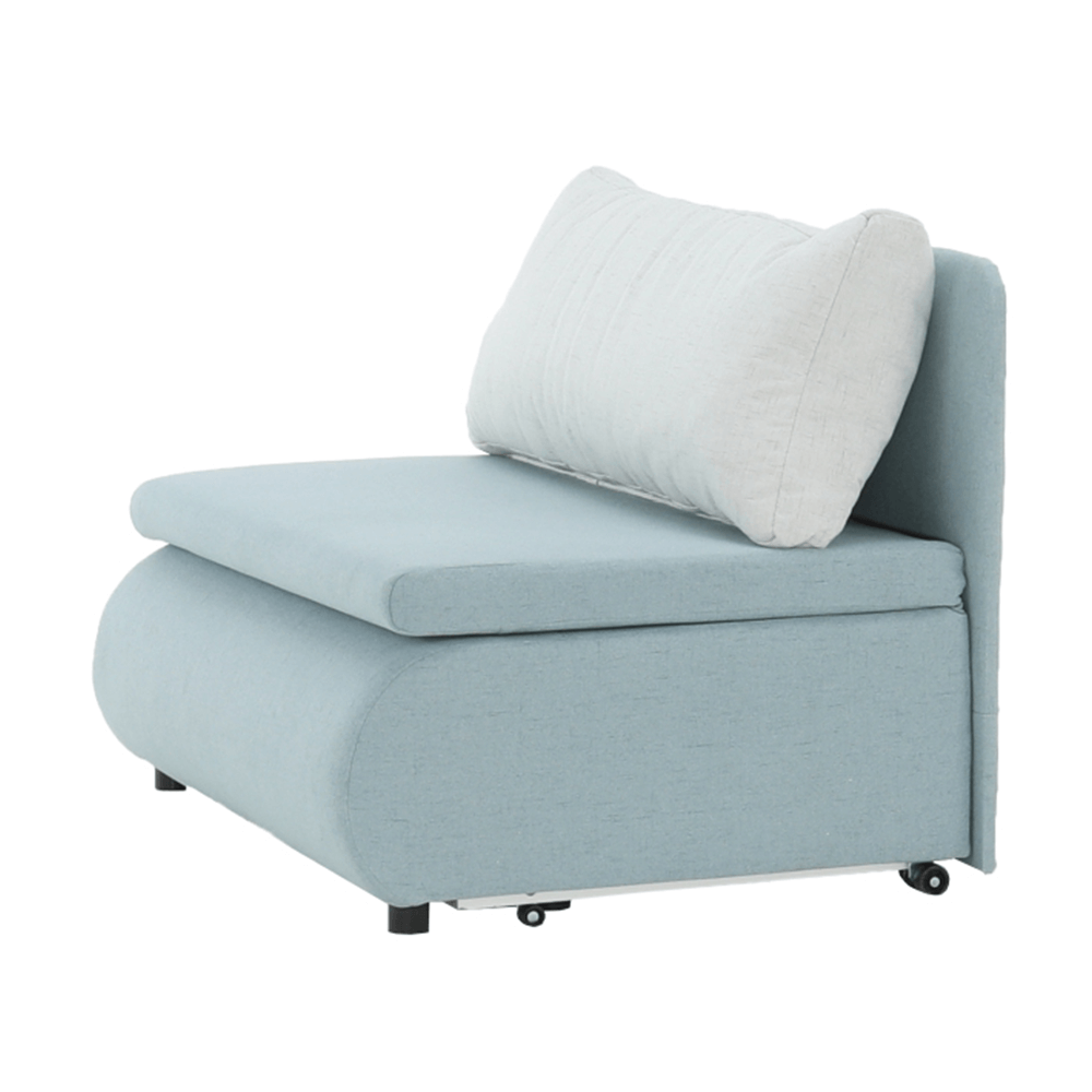 Moderné rozkladacie kreslo KENY New s úložným priestorom, materiál: látka Cablo mentolová 10/krémová 01 Oderuodolnosť textílie podľa testu Martindale: 72 000 oderov rozmery: ŠxVxH: 100x90x87 cm, plocha na spanie: ŠxD: 100x196 cm. Výška spodného priestoru od podlahy: 5 cm Nosnosť: 70 kg