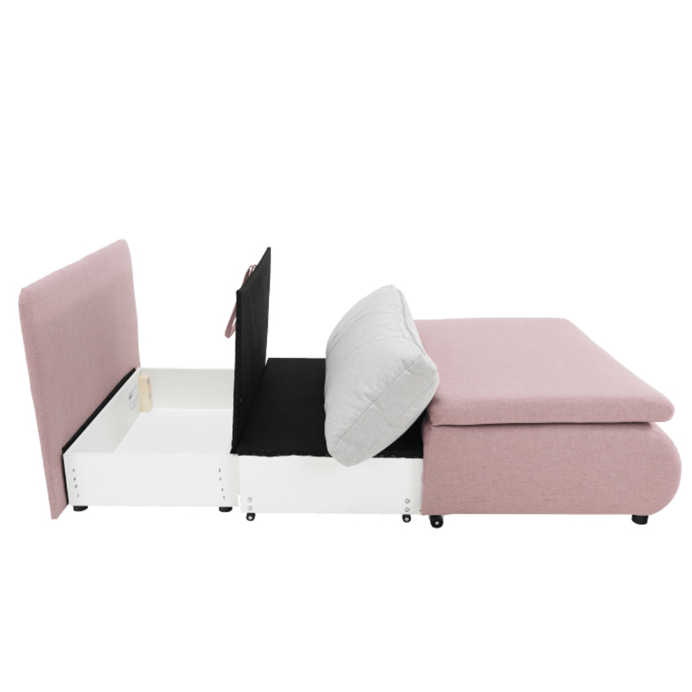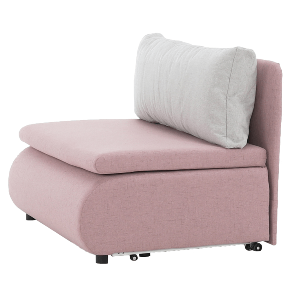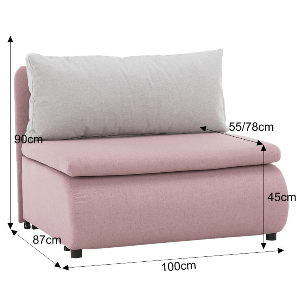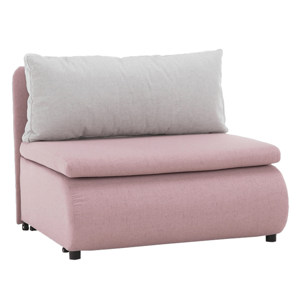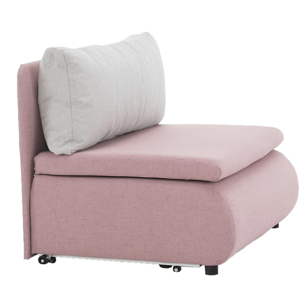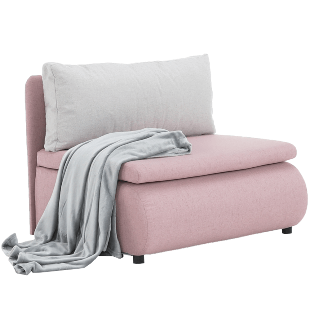 Moderné rozkladacie kreslo KENY New s úložným priestorom, materiál: látka Cablo ružová 12/vankúš svetlosivá 13 Oderuodolnosť textílie podľa testu Martindale: 72 000 oderov rozmery: ŠxVxH: 100x90x87 cm, plocha na spanie: ŠxD: 100x196 cm. Výška spodného priestoru od podlahy: 5 cm Nosnosť: 70 kg