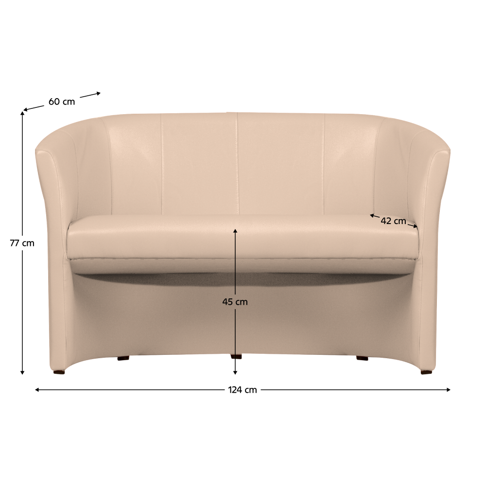 Dvojkreslo CUBA Materiál: ekokoža Oderuodolnosť textílie podľa testu Martindale: 100 000 oderovOdtieň: béžováRozmery (ŠxHxV): 124x60x77 cm. Nosnosť: 200 kgMožnosť objednať dvojkreslo CUBA aj v: mikrofáze za cenu 149 Eur ekokoži alebo v látke Lava v cene 169 Eur, cena v látke Savana alebo v látke Soro 159 Eur a v látke Kronos 159 Eur. Pri individuálnej objednávke je potrebné zaplatiť 10% zálohu z danej sumy. Po uhradení zálohy bude Vaša požiadavka zadaná do výroby. Doba dodania 8-10 týždňov.