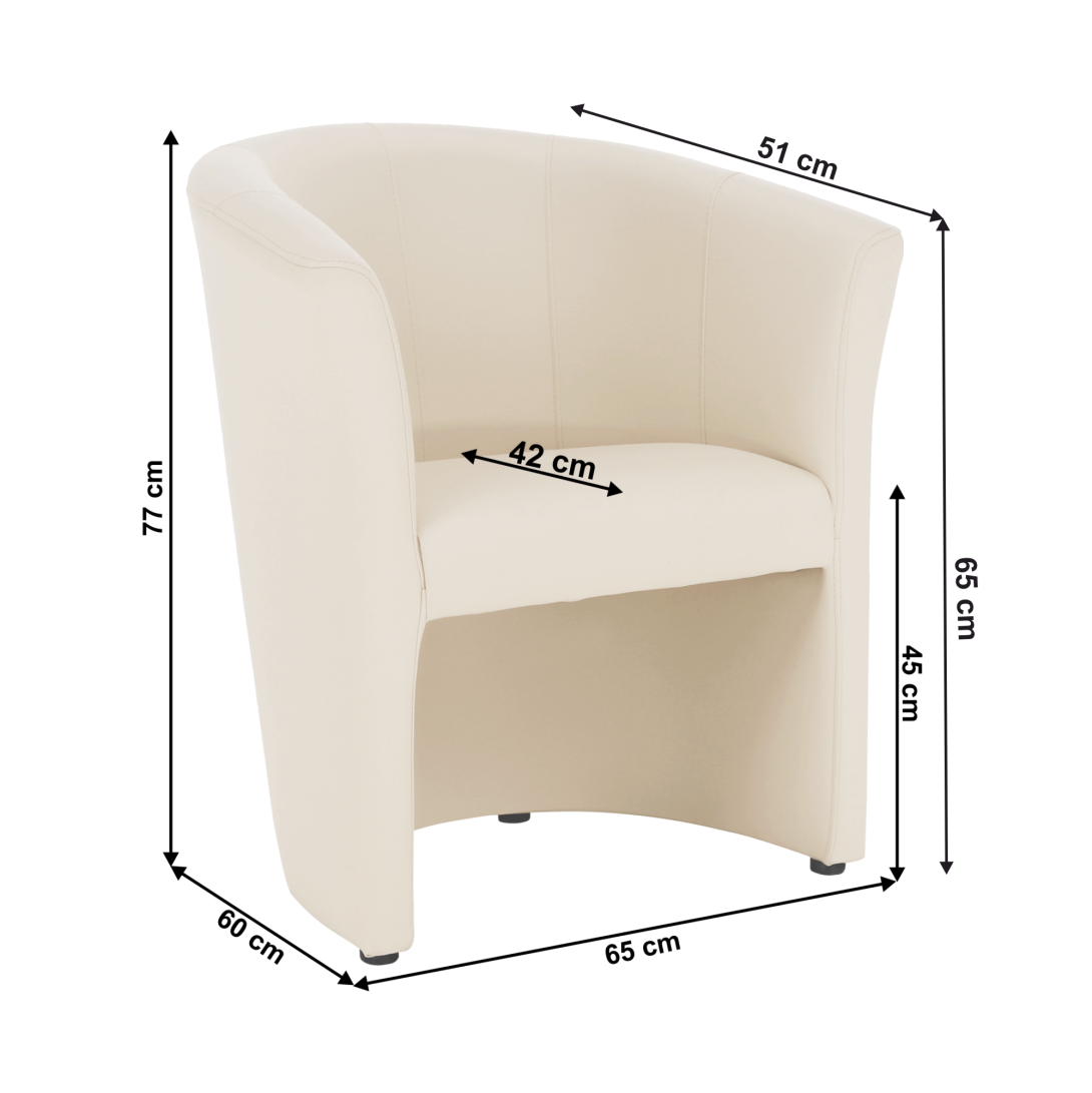 Kreslo CUBA, Materiál: ekokoža, Oderuodolnosť textílie podľa testu Martindale: 100 000 oderovOdtieň: béžová, Rozmery (ŠxHxV): 65x60x77 cm. Nosnosť: 120 kgMožnosť objednania v látke Savana: 99 Eur, v látke Kronos: 99 Eur, v mikrofáze: 89 Eur, v ekokoži za cenu 105 Eur, v kombinácii látky s ekokožou za cenu 105 Eur alebo v kombinácii látky Soro a Lava za cenu 99 Eur. Pri individuálnej objednávke je potrebné zaplatiť 10% zálohu z danej sumy. Po uhradení zálohy bude Vaša požiadavka zadaná do výroby. Doba dodania 8-10 týždňov.