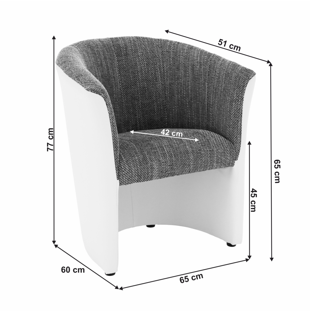Kreslo CUBA, Materiál: ekokoža/látkaOderuodolnosť textílie podľa testu Martindale: 100 000 oderovOdtieň: biela/siváRozmery (ŠxHxV): 65x60x77 cm. Nosnosť: 120 kgMožnosť objednania v látke Savana: 99 Eur, v látke Kronos: 99 Eur, v mikrofáze: 89 Eur, v ekokoži za cenu 105 Eur, v kombinácii látky s ekokožou za cenu 105 Eur alebo v kombinácii látky Soro a Lava za cenu 99 Eur. Pri individuálnej objednávke je potrebné zaplatiť 10% zálohu z danej sumy. Po uhradení zálohy bude Vaša požiadavka zadaná do výroby. Doba dodania 8-10 týždňov.