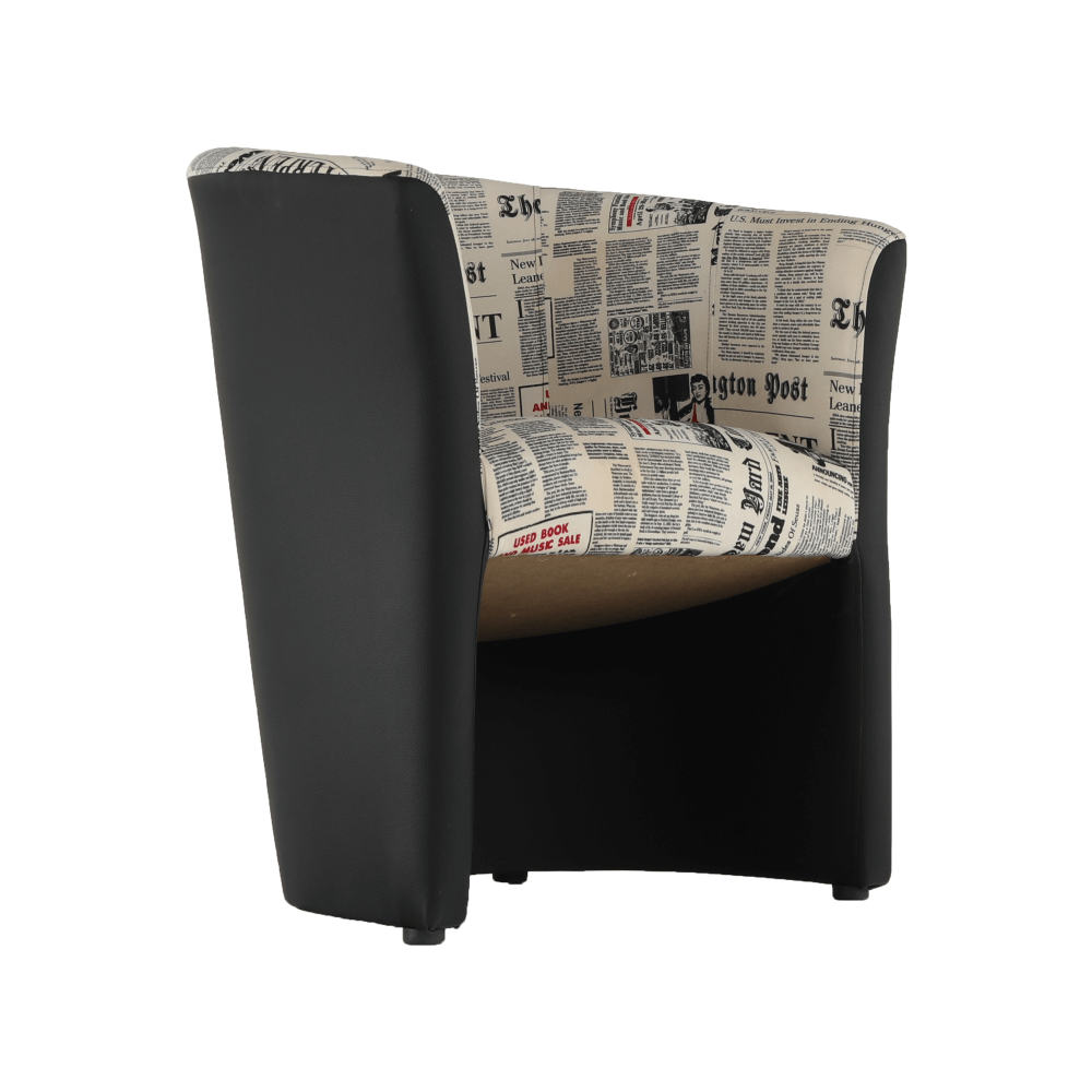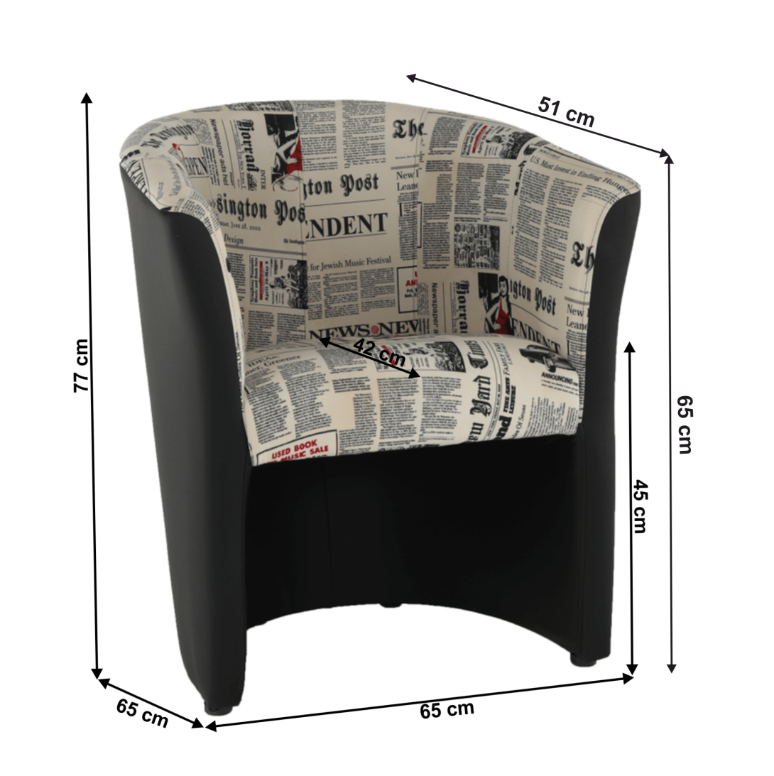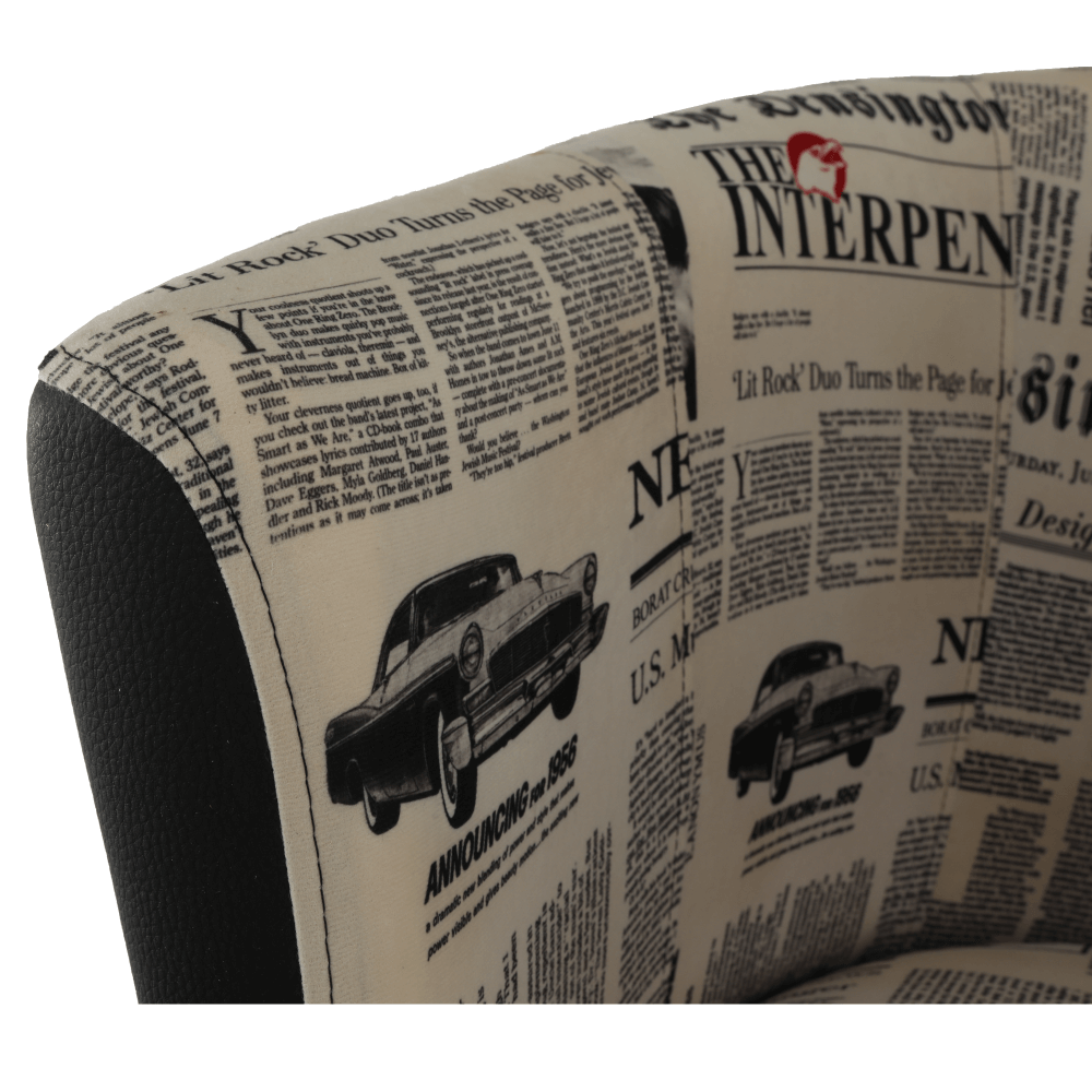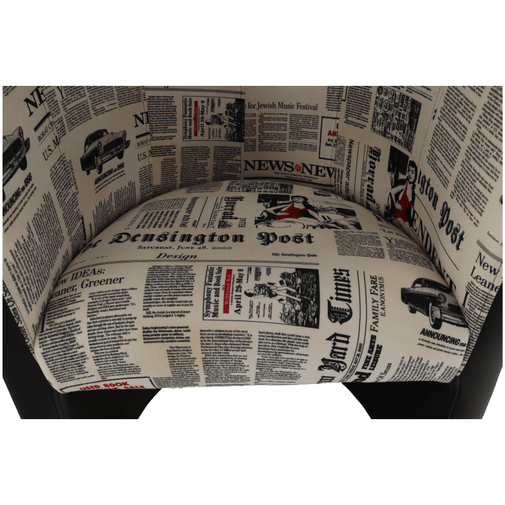 KONDELA Klubové kreslo, ekokoža čierna/látka vzor novín, CUBA