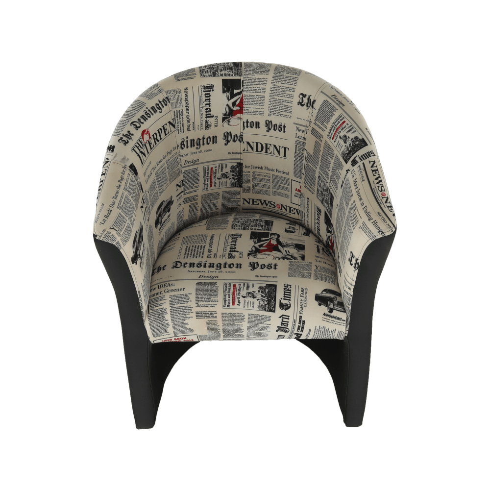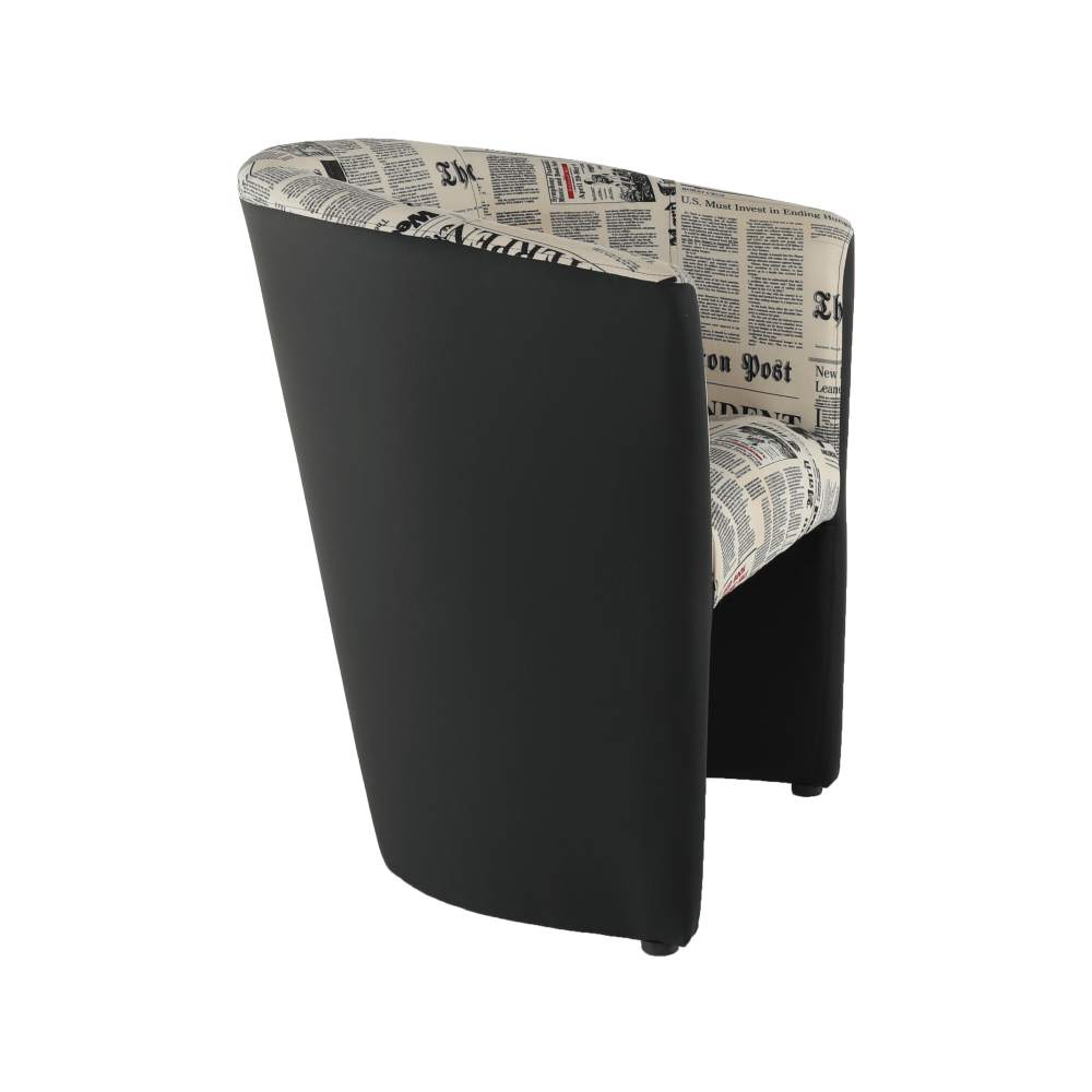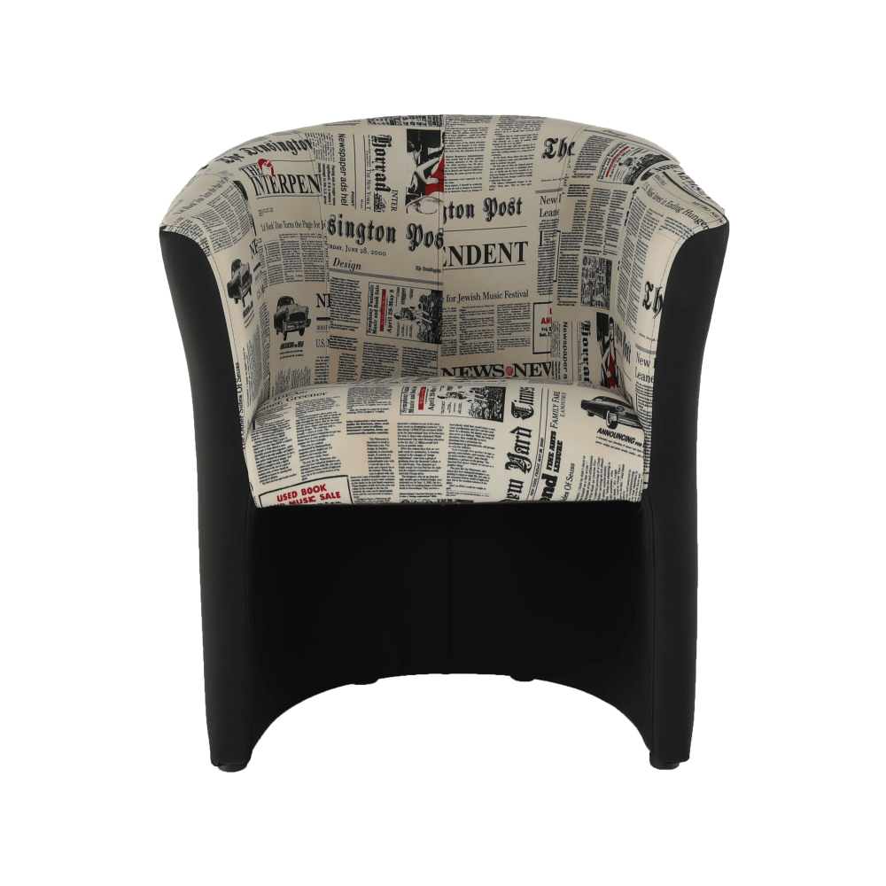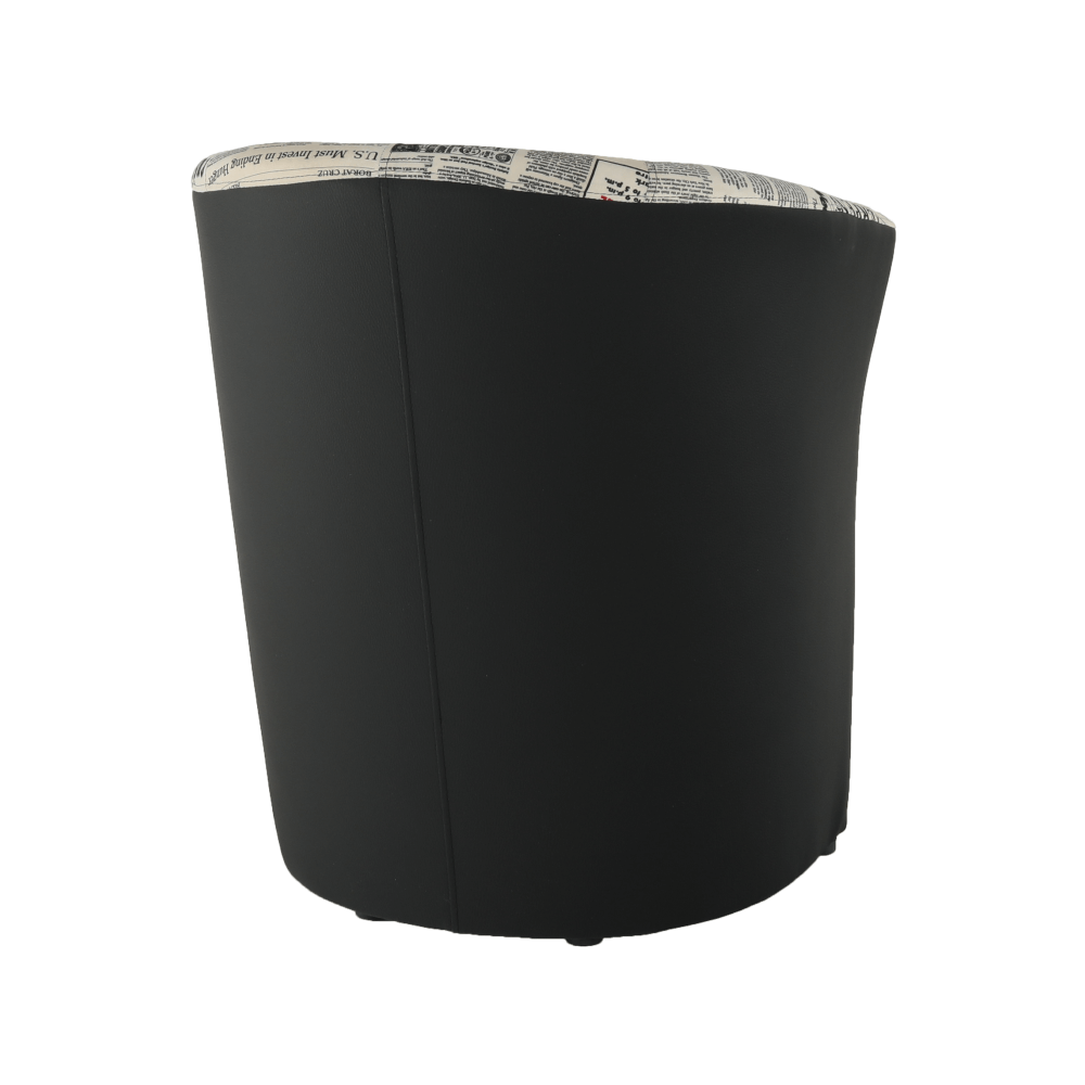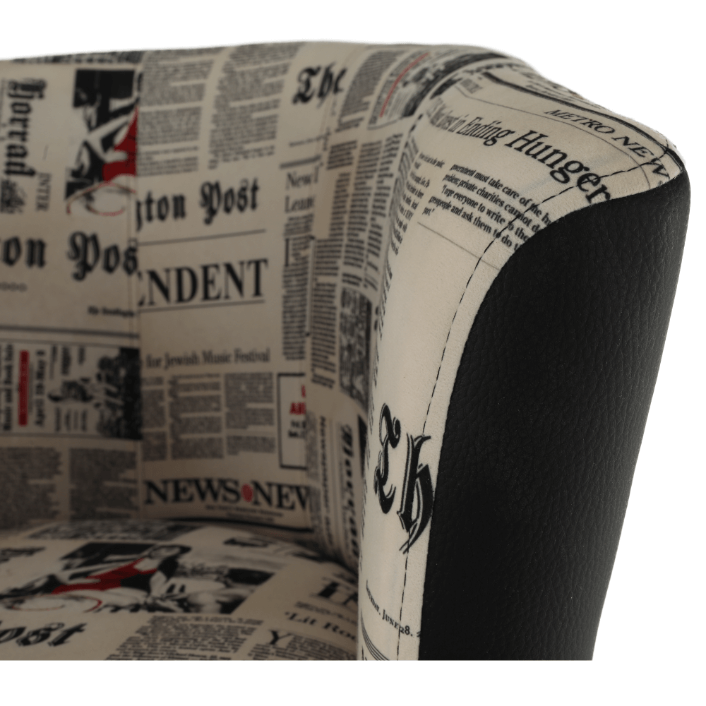 KONDELA Klubové kreslo, ekokoža čierna/látka vzor novín, CUBA