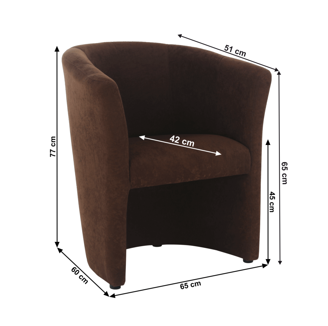 Kreslo CUBA, Materiál: mikrofáza, Oderuodolnosť textílie podľa testu Martindale: 85 000 oderovOdtieň: hnedá, Rozmery (ŠxHxV): 65x60x77 cm. Nosnosť: 120 kgMožnosť objednania v látke Savana: 99 Eur, v látke Kronos: 99 Eur, v mikrofáze: 89 Eur, v ekokoži za cenu 105 Eur, v kombinácii látky s ekokožou za cenu 105 Eur alebo v kombinácii látky Soro a Lava za cenu 99 Eur. Pri individuálnej objednávke je potrebné zaplatiť 10% zálohu z danej sumy. Po uhradení zálohy bude Vaša požiadavka zadaná do výroby. Doba dodania 8-10 týždňov.