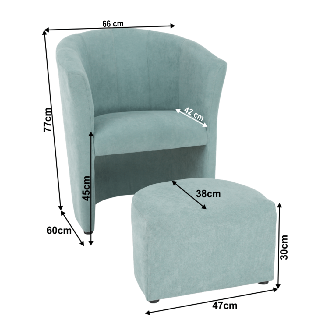 Kreslo s taburetom ROSEMateriál: látka SoroOderuodolnosť textílie podľa testu Martindale: 90 000 - 100 000 oderovFarba: 34 mentolováRozmery kreslo (ŠxHxV): 66x60x77 cmVýška sedu: 45 cmHĺbka sedu: 42 cmRozmery taburet (ŠxHxV): 47x38x30 cmHmotnosť: 17 kgNosnosť: 120 kgTaburet ako súčasťCeločalúnenéDodávané v demonte.Možnosť objednania v látke Soro, Kronos alebo Savana: 129 Eur, v látke mikrofáza: 125 Eur v ekokoži alebo v látke Lava: 135 Eur. Pri individuálnej objednávke je potrebné zaplatiť 10% zálohu z danej sumy. Po uhradení zálohy bude Vaša požiadavka zadaná do výroby. Doba dodania 8-10 týždňov.
