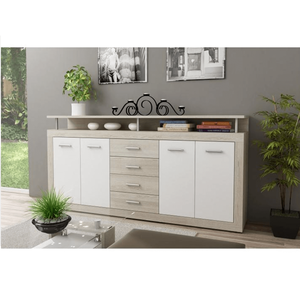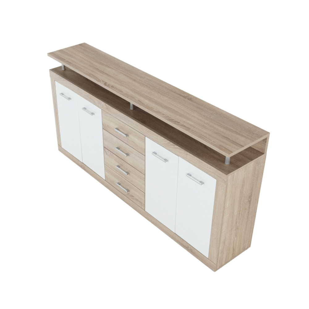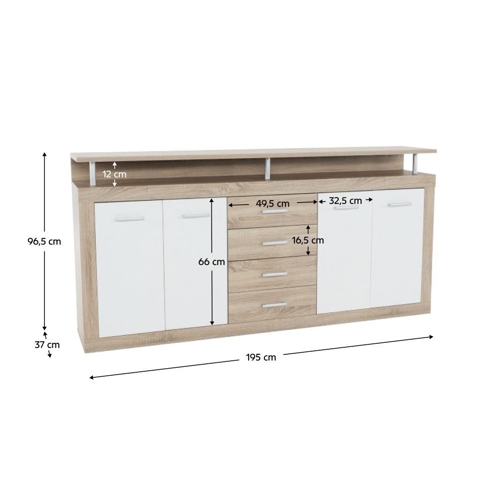 Komoda JACHIM - JUNO NEW, materiál: DTD laminovaná, Farebné prevedenie: dub sonoma/biela, Rozmer (ŠxHxV): 195x37x96,5 cmHrúbka materiálu: 16 mmDodávaná v demonte.