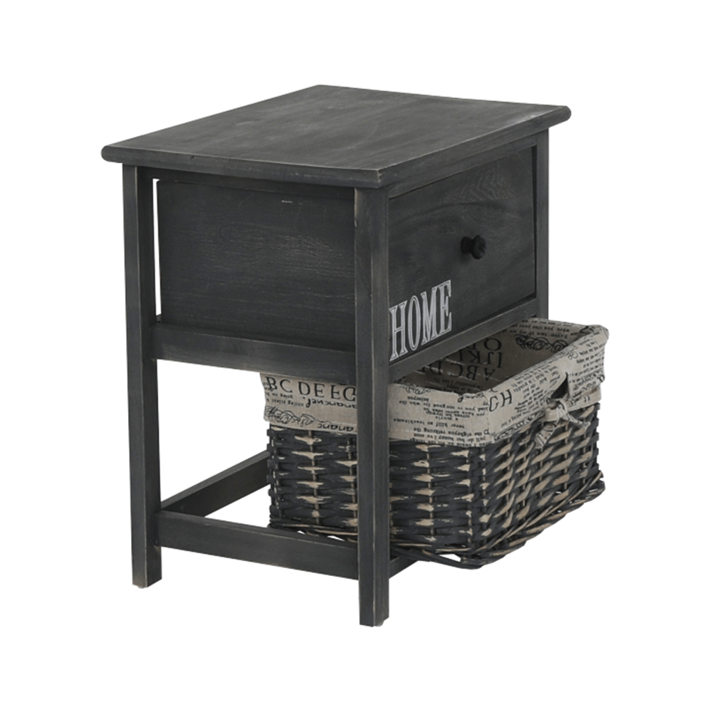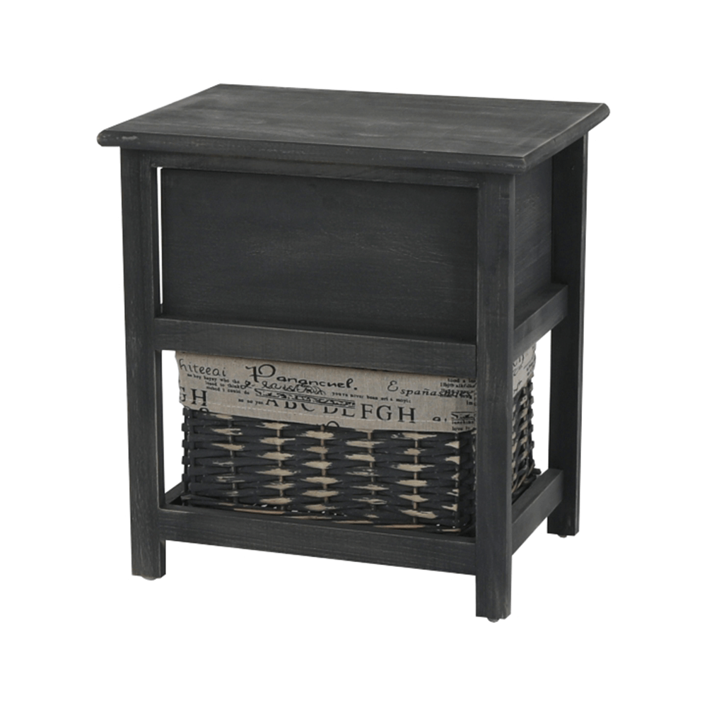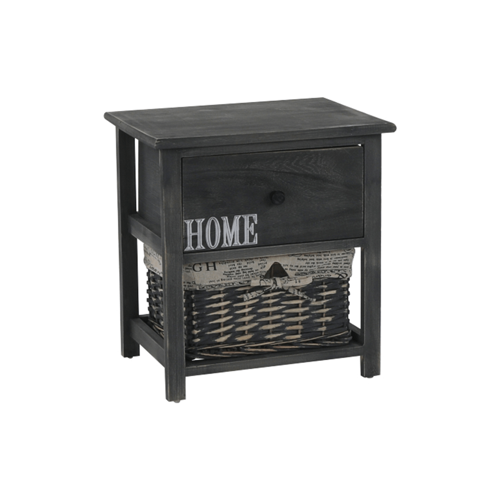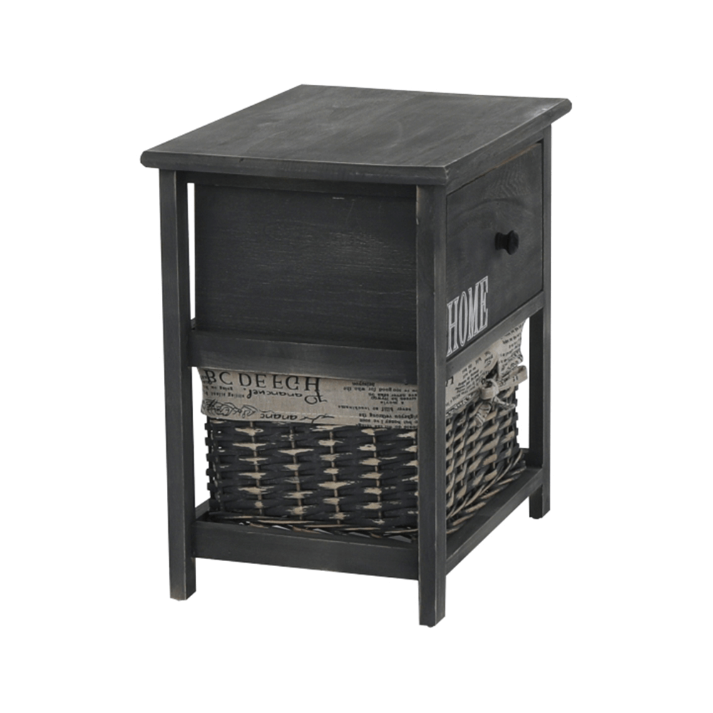Komoda ( prípadne nočný stolík ) s pevným rámom,S funkčnou zásuvkou a prúteným košíkom,Materiál: drevo / prútie,Farebné prevedenie: tmavo hnedá,ŠxVxH: 40x42x29 cm.