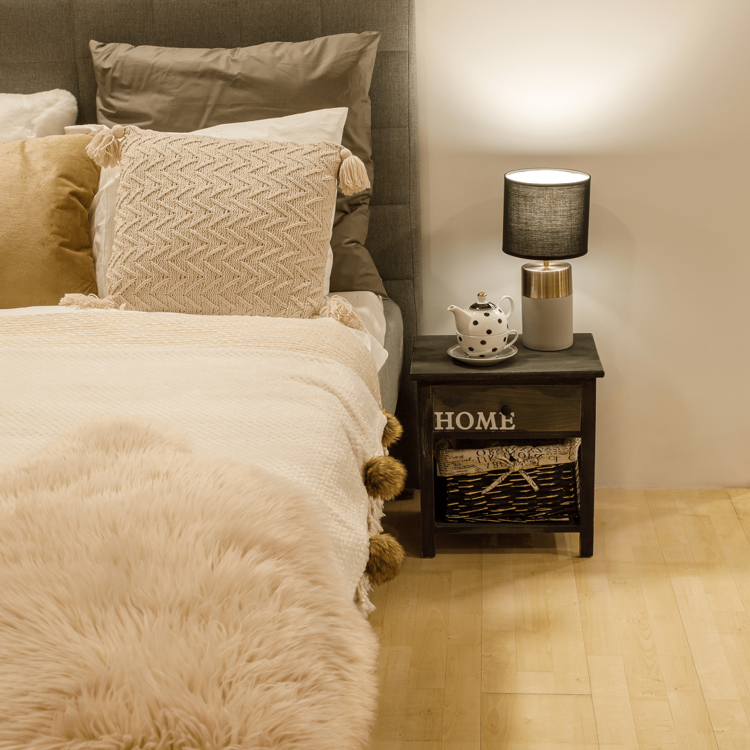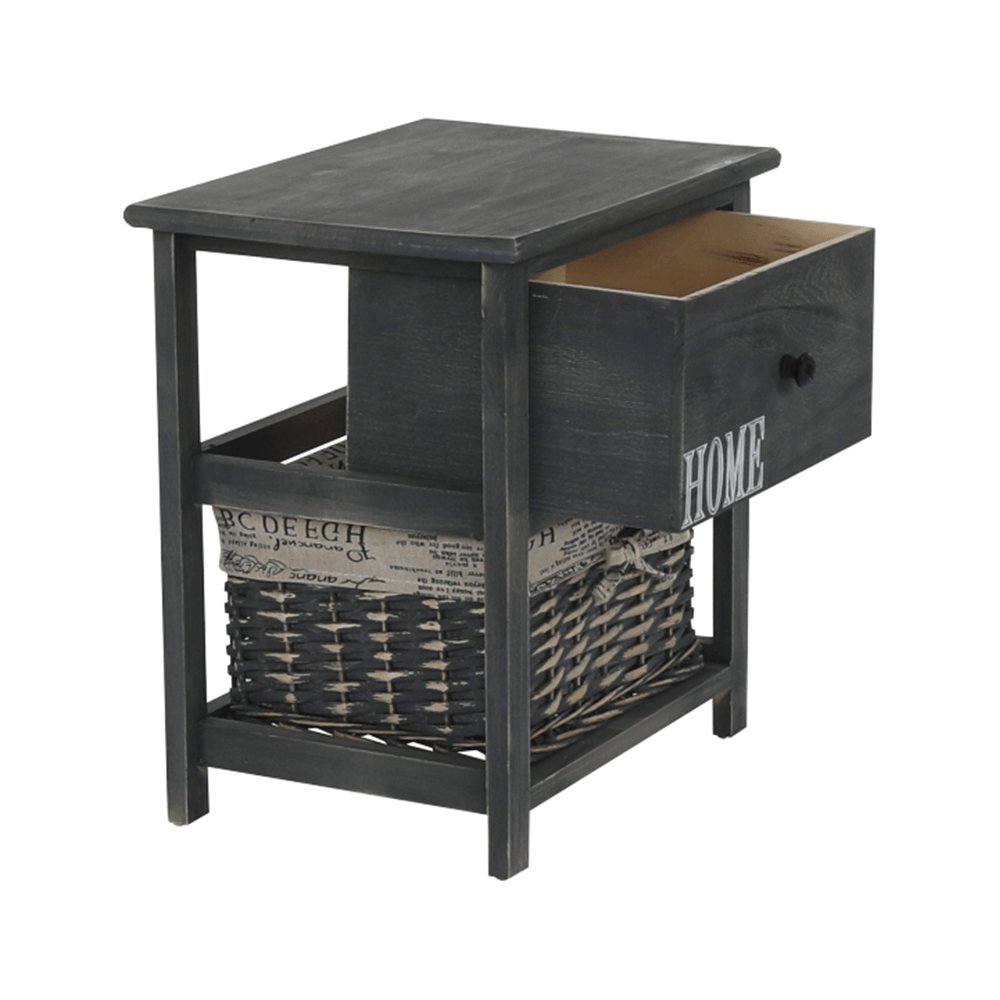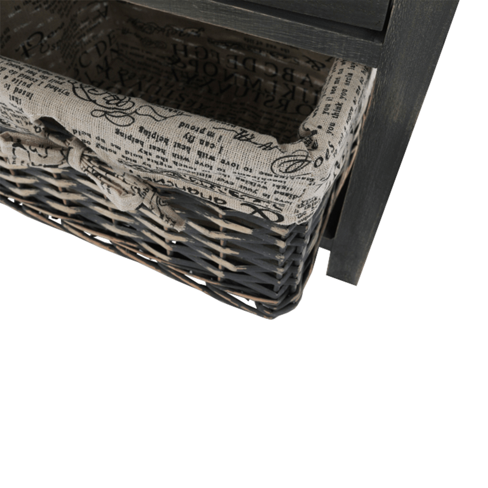 Komoda ( prípadne nočný stolík ) s pevným rámom,S funkčnou zásuvkou a prúteným košíkom,Materiál: drevo / prútie,Farebné prevedenie: tmavo hnedá,ŠxVxH: 40x42x29 cm.