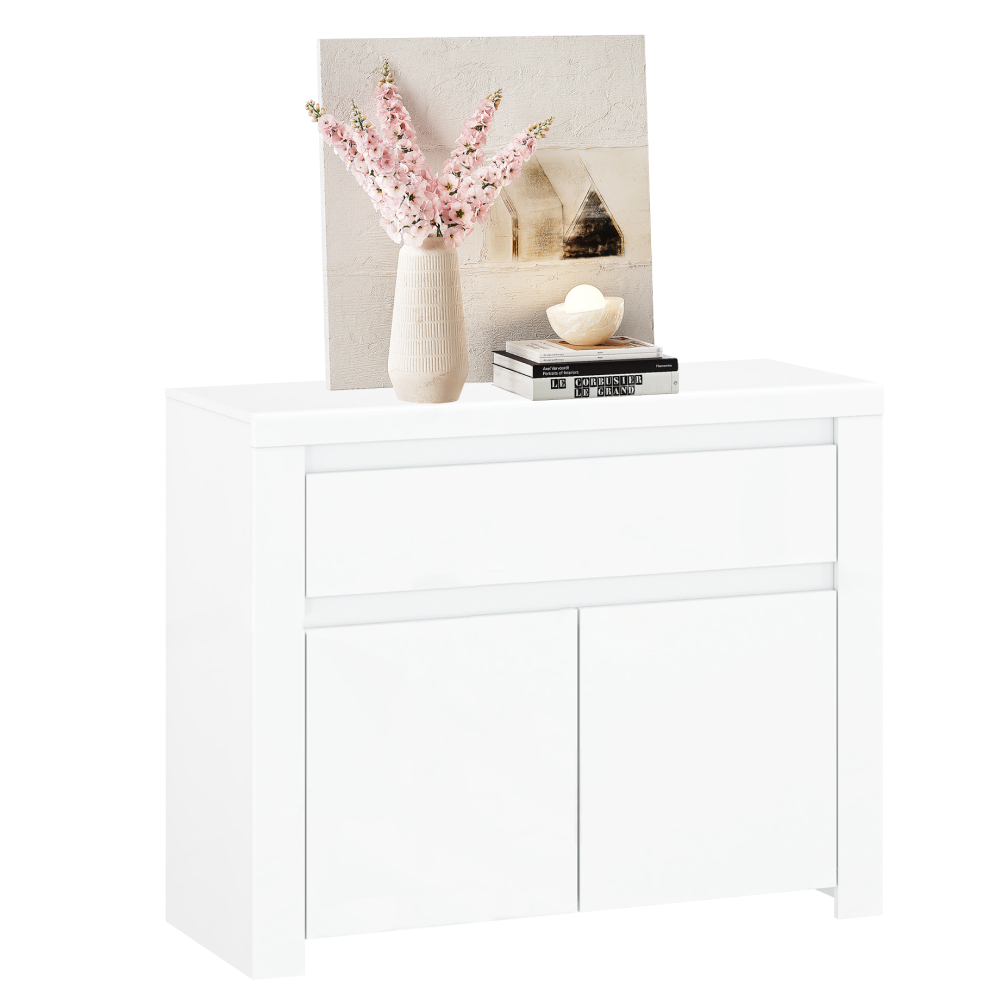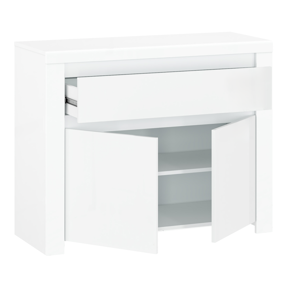 KONDELA Komoda 2D1S, biely lesk, LINDY