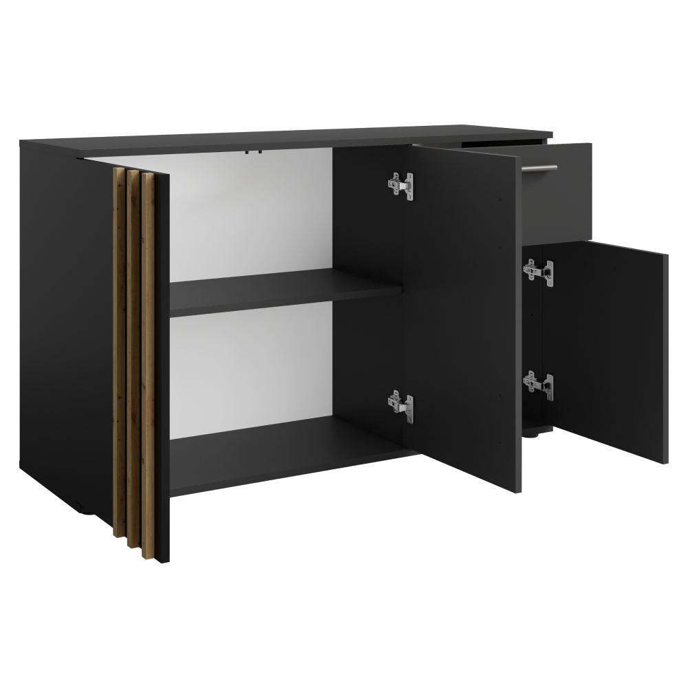 KONDELA Komoda, 3D1S, čierna/dub artisan, TOLIS TYP 2