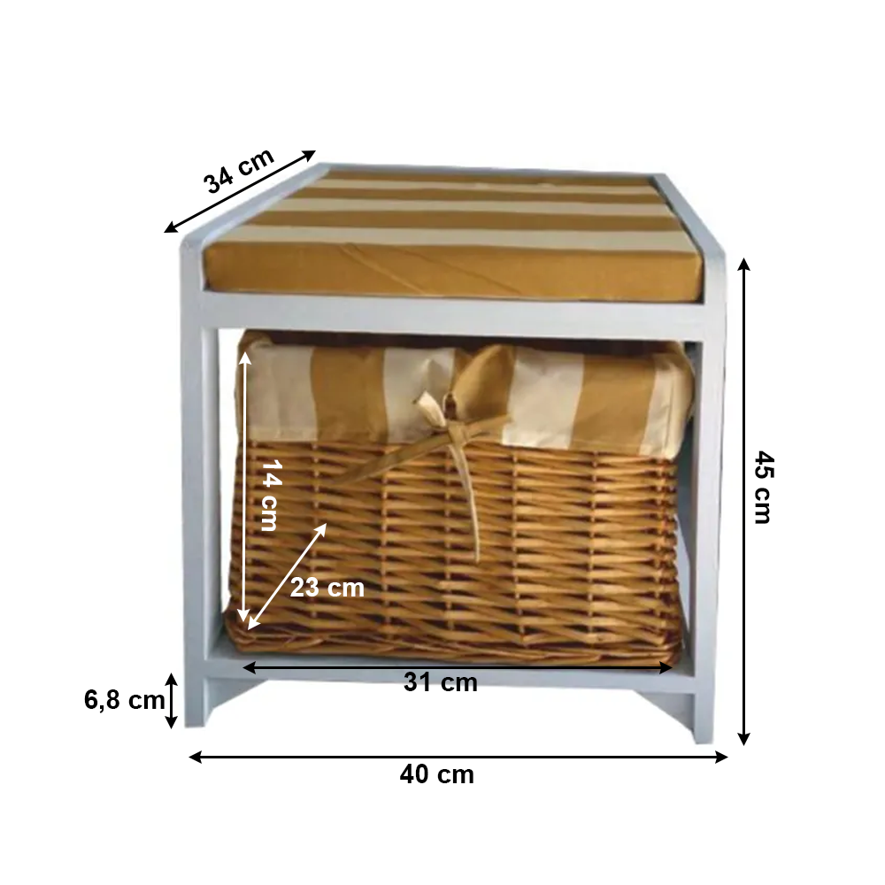Komoda GINGER3 NEW s prúteným košíkom určená aj na sedenie v kombinácii bielej a medovej farby.Materiál drevo / prútie / látkaRozmery (ŠxHxV): 40x34x45 cmRozmery košíka (ŠxHxV): 31x23x14 cmDodávané v monte