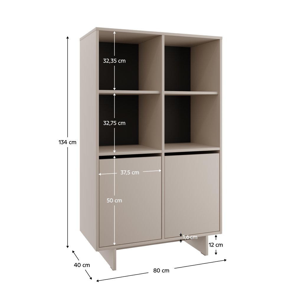 Materiál: DTD laminovanáFarba: kašmírRozmery (ŠxHxV): 80x40x134 cmHrúbka materiálu: 1,6 cmDvojdverováOtvorený úložný priestorPolicováNa nožičkáchVýška nožičiek: 12 cmPlastové klzákyVýška plastových klzákov: 0,5 cmNosnosť police: 5 kgModerný dizajnOdporúčame pripevniť k steneDodávané v demonte