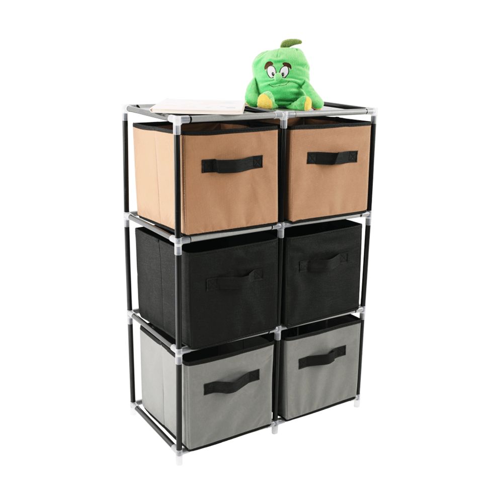 Materiál konštrukcia: kovFarba: čiernaMateriál šuplíky: látkaFarba: hnedá/siváMateriál spojovacie diely: plastRozmery (ŠxHxV): 58x30x83,5 cmŠesť šuplíkovPraktickáKovová konštrukciaLátkové šuplíkyS úchytkamiPlastové spojovacie dielyJednoduchá montážRôzne varianty poskladaniaDodávané v demonte