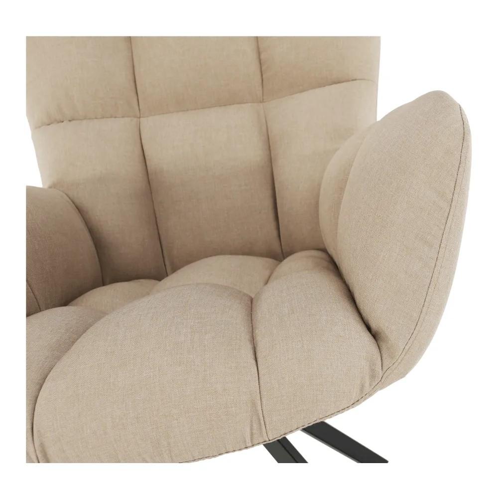 Dizajnový kúsok, ktorý vyzerá ako kreslo, no veľmi rýchlo sa pre vás stane obľúbeným domácim maznáčikom. Nežné, maznavé kreslo zastúpi vášho najlepšieho priateľa. Nikdy vás nesklame, vždy tu bude pre vás, aby vás objalo, poskytlo teplo a nehu, zabezpečilo maximálny komfort. Vysnívali ste si svoje ideálne bývanie? Nechajte v ňom vyniknúť moderné kreslo KOMODO. Výhodou je, že kreslo je otočné. Môže stáť bez pohnutia na jednom mieste, no vy z neho budete mať rozhľad na celú miestnosť. Čalúnené je látkou v modernom a trendovom béžovom prevedení. O stabilitu sa starajú pevné kovové čierne nohy. Pohodlie a relax, presne to môžete očakávať od kresla, ktoré sa pýši nadýchaným mäkkým čalúnením. Zažite skutočný, čistý a ničím nerušený oddych!