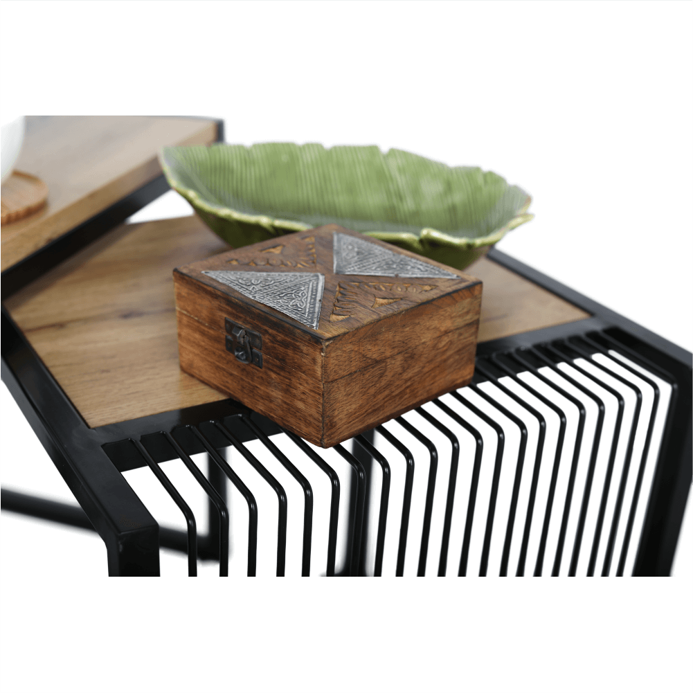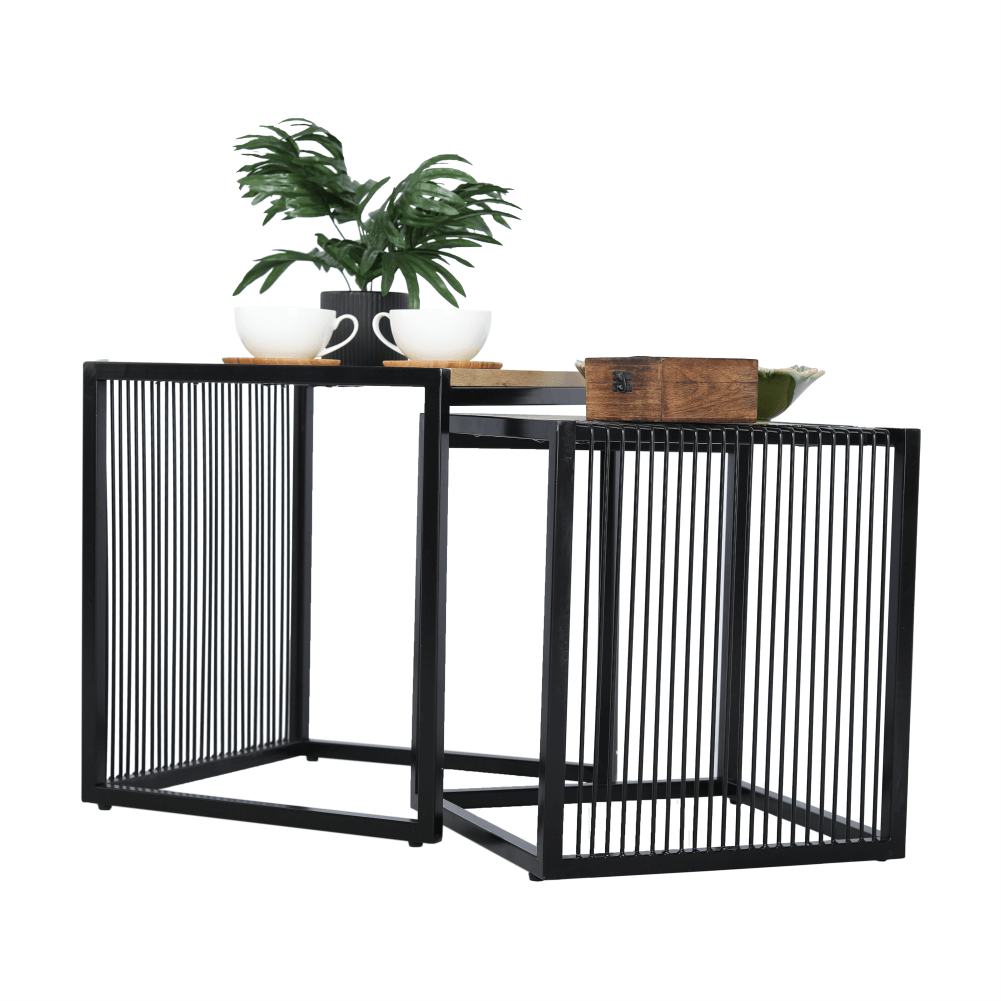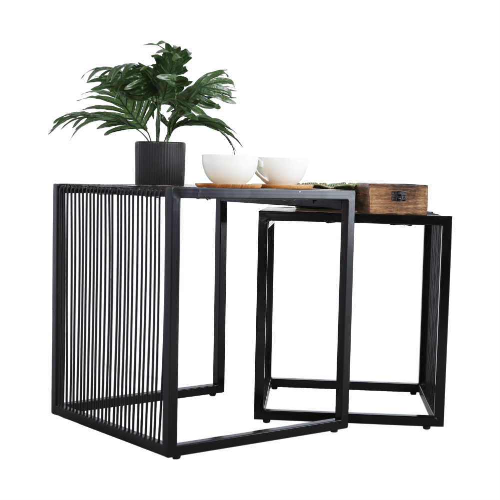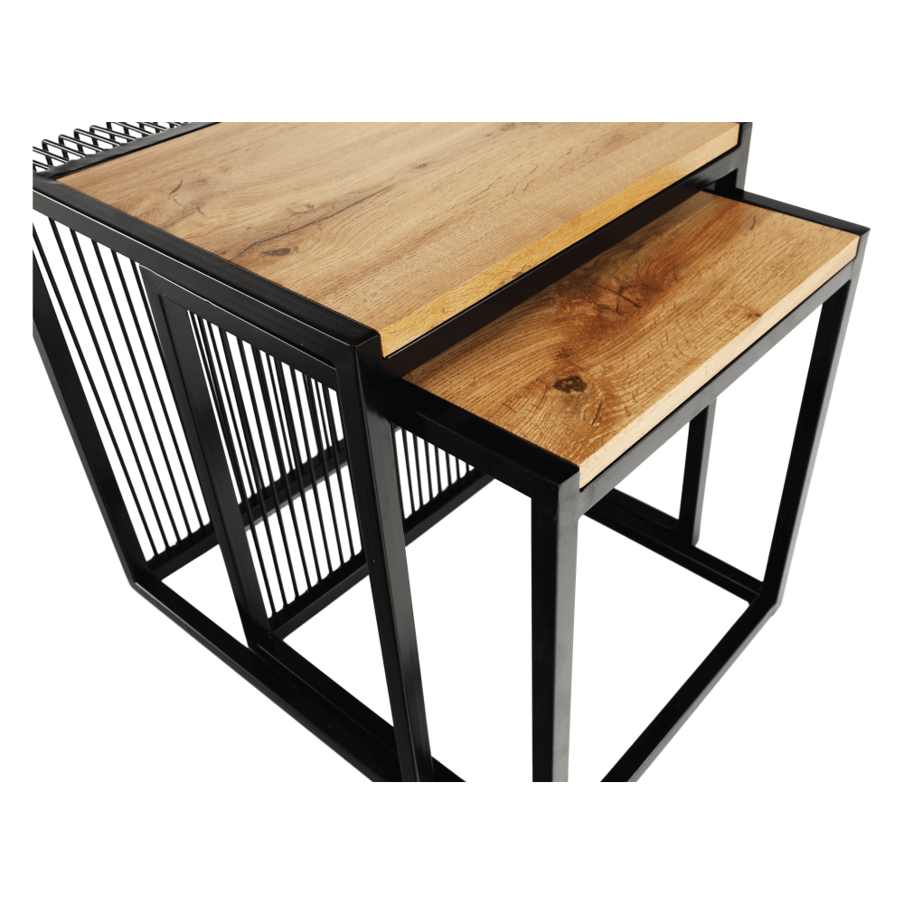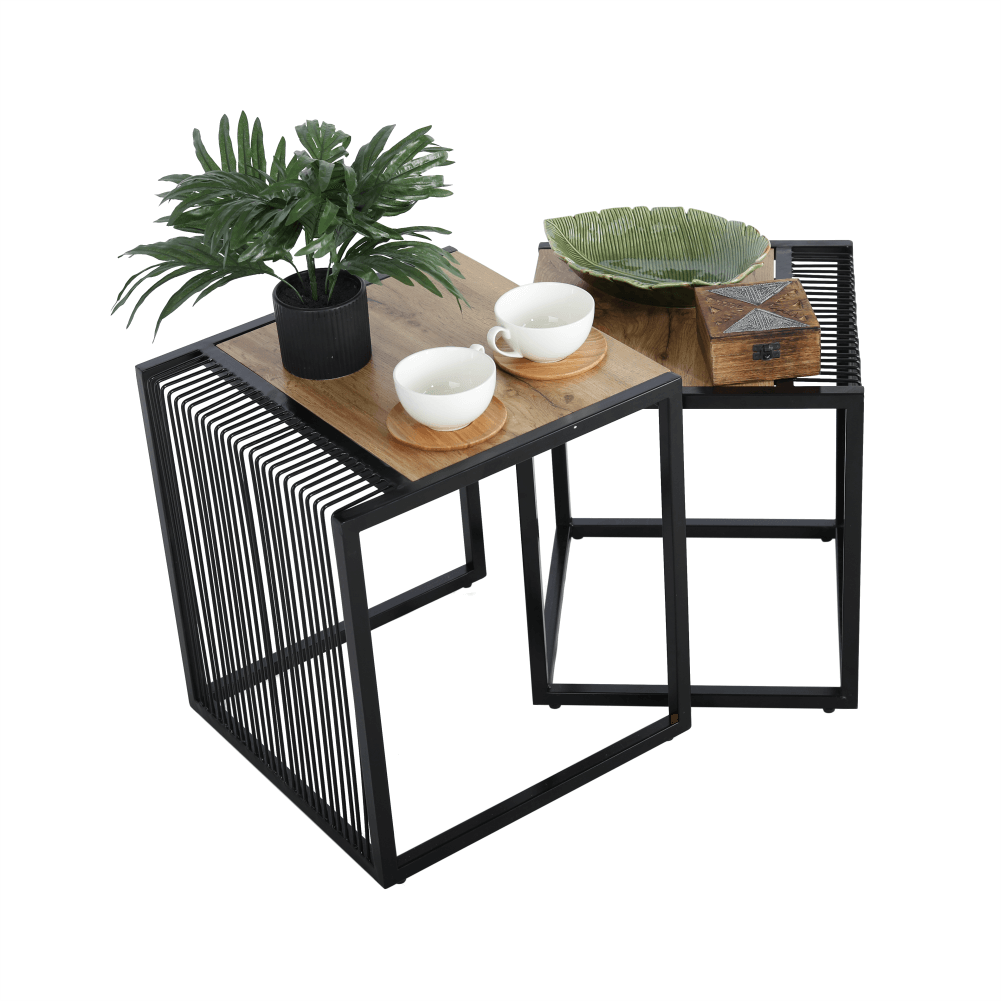 Set dvoch konferenčných stolíkov RIMBOMateriál: MDF/kovFarebné prevedenie: dub/čierny kovRozmery väčší (ŠxHxV): 45x45x50 cmRozmery menší (ŠxHxV): 40x40x45 cmDodávané v demonte.